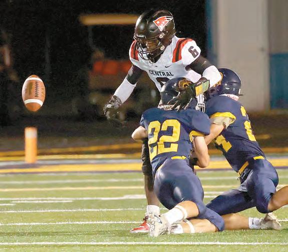 Throwing from the end zone, quarterback Tomi Animasaun was intercepted both times. Ben Mugisa’s pickoff set up a one-yard touchdown by Jacob Sampson. Charlie Eggert dashed five yards