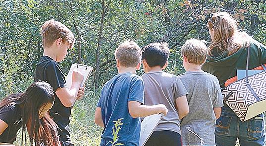 Vadnais Heights Elementary fifth graders and experts from Tamarack Nature Center explore the Bears Backyard Classroom and use clues found in nature to determine how many different types of plants, insects and animals call their outdoor classroom home.