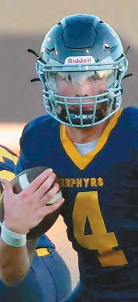 Finn completed 11 of 18 passes for 262 yards with touchdown tosses to Alex Haase (72 yards), Joey Pipes (28 yards) and Jackson Chesak (18 yards), against one interception. Finn ran 21 times for 93 yards and an eight-yard TD that gave the Zephyrs a 24-20 lead. Pipes caught seven passes for 106 yards and Ethan Boeke two for 65. Gavin Kruse gained 42 yards in nine rushes. Luke Torgrude intercepted a pass. Tartan (2-3) got a late 37yard touchdown pass from Charles Graske to Jerror Borsay to pull it out. The Titans’ edge was going 3-for-4 on conversions.