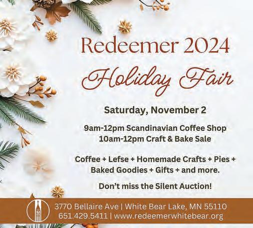 The trail officially opened on October 24 and will run through November 1 at Community Park at 641 East County Road F. It will be open during regular park hours, 30 minutes before sunrise and 30 minutes after sunset. Those interested in voting for their favorite scarecrow can do so online at www. cityvadnaisheights.com. Voting will close at 4 p.m. November 1; winners will be announced on November 4.