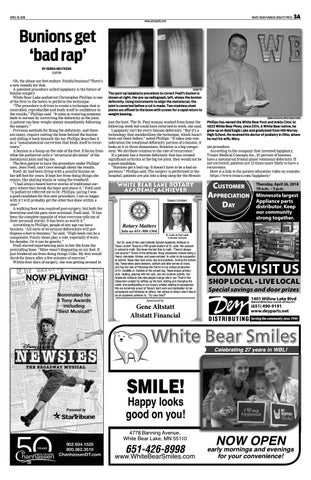 Phillips has owned the White Bear Foot and Ankle Clinic at 4653 White Bear Pkwy. since 2014. A White Bear native, he grew up on Bald Eagle Lake and graduated from Hill-Murray High School. He received his doctor of podiatry in Ohio, where he met his wife, Mary.