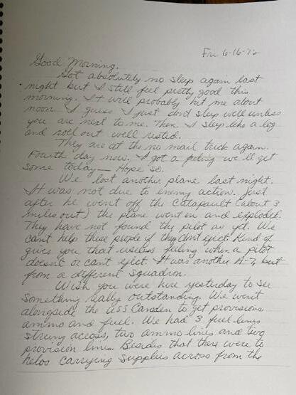 Suzanne said. “I just liked the fact that there was so much to learn about the war in the letters. The thing that really got me was that he was on this huge aircraft carrier for nine months and yet he found something to write every day.”