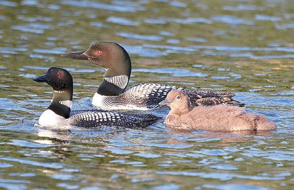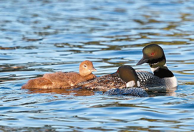 During the last two weeks, if it wasn’t raining, it was blowing to beat the band or too dark to photograph anything. We did manage to find a few days with good light and calm waters. We were not disappointed. First, the bad news. The Cove parents tried and tried to renest, but, in the end, they were not successful. Time simply ran out on them. The good news is that they can spend the rest of the summer chilling with the rafting bachelors, and getting in on all the Loon social behaviors, they miss while parenting. They remain a pair and are easy to spot. We have no doubt that they will start anew next April. The Peninsula parents are taking their new role seriously. Seldom, do they let Eloise out of their sight, and