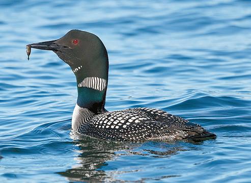 still appear uncomfortable and on guard when Eloise is diving. As you can see from the photos, Eloise, who just celebrated her one month birthday, continues to grow like a weed and is even starting to molt. She eagerly accepts double fish deliveries and soon will be catching some on her own. Every time we find the family, the parents are fishing and making multiple fish deliveries. Often, one parent will watch to make certain that Eloise takes and swallows the fish delivered by the other parent. They travel as a tight little trio, working their way along the shoreline on the west side of the Peninsula. If boat traffic or noise become intolerable, they make their way to the bulrushes, for cover. Last week, when loud sirens were