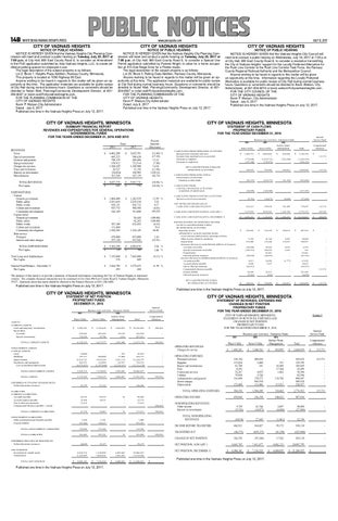 NOTICE OF PUBLIC HEARING NOTICE IS HEREBY GIVEN that the Vadnais Heights City Planning Commission will meet and conduct a public hearing on Tuesday, July 25, 2017 at 7:00 p.m. at City Hall, 800 East County Road E, to consider an Amendment to the PUD application submitted by Volp Vadnais Heights, LLC, to create additional parking spaces for employee’s use. The legal description of the subject property is as follows: Lot 2, Block 1, Heights Plaza Addition, Ramsey County, Minnesota. This property is located at 1056 Highway 96 East. Anyone wishing to be heard in regards to this matter will be given an opportunity at this time. The application materials are available for public review at City Hall during normal business hours. Questions or comments should be directed to Nolan Wall, Planning/Community Development Director, at 651204-6027 or nolan.wall@cityvadnaisheights.com. FOR THE PLANNING COMMISSION OF THE CITY OF VADNAIS HEIGHTS Kevin P. Watson,City Administrator Dated: July 6, 2017 Published one time in the Vadnais Heights Press on July 12, 2017.