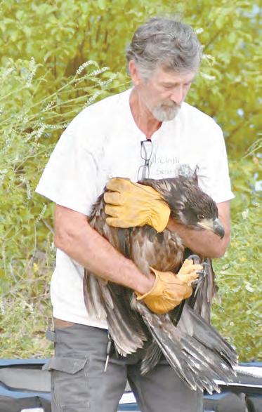 John Arent, Lori’s husband, and seasoned falconer, helped the staff strategically place the two birds into an area that would encourage them to stay put that night.