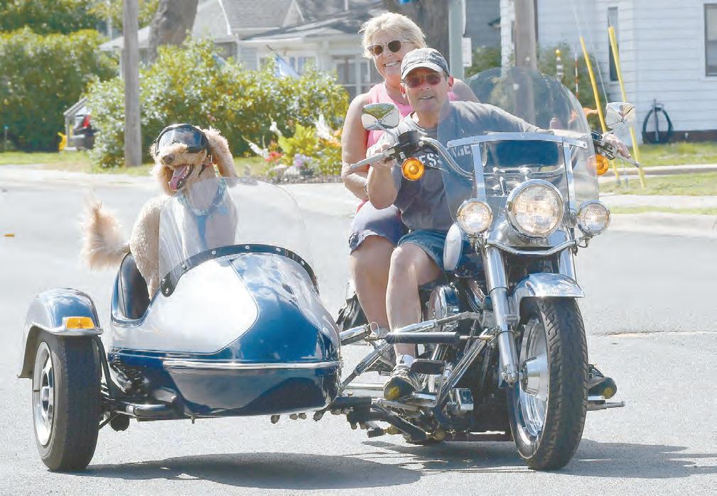 “Cooper,” Bill and Billie Wolfe’s golden doodle, enjoys a breeze while riding in a sidecar during a recent motorcycle cruise through White Bear Lake that included a stop at the iconic Cup and Cone restaurant.