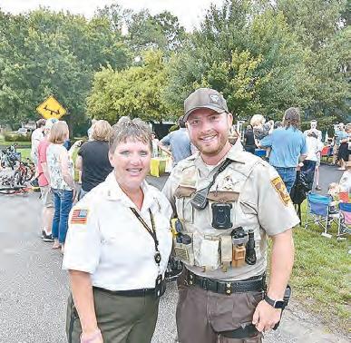 3. Ramsey County Community Affairs Officer LeAnn Jansen and her son, Deputy Kyle Jansen, visited a Night to Unite gathering in White Bear Township hosted by Liz Tauer and Deb Hruby. — Paul Dols