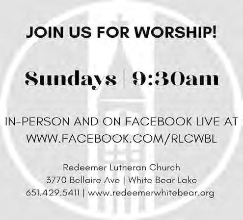 WEDNESDAY, AUGUST 9, 2023 VOL. 128 NO. 43 www.whitebearpress.com $1.00 LAKE LINKS: Interactive trail map updated PAGE 10 CIRCULATION 651-407-1234 circ@presspubs.com NEWS 651-407-1230 whitebearnews@presspubs.com ADVERTISING 651-407-1200 marketing@presspubs.com CLASSIFIED 651-407-1250 classified@presspubs.com PRODUCTION 651-407-1239 artmanager@presspubs.com PRESORTED STANDARD U.S. POSTAGE PAID PERMIT NO. 9 CIRCLE PINES, MN Press Publications 4779 Bloom Avenue White Bear Lake, MN 55110 CHANGE SERVICE REQUESTED
