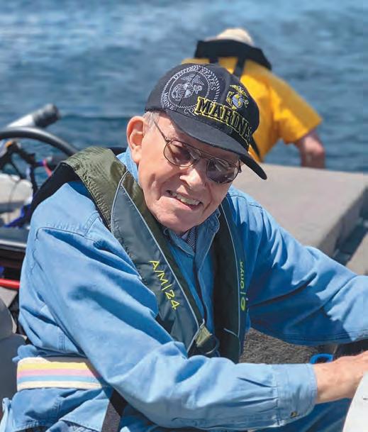 white feathers around its bill, all signs of reaching an older age, has taken a particular interest in Eloise and can be seen with her during most early mornings, as well as later in the day. The two appear very comfortable with each other. Research suggests that Loon chick parents start to leave their chicks, 8-12 weeks post hatch. During the weaning process, however, the parents will still stay overnight with their chicks, beyond twelve weeks. We hope that is the case with Eloise’s parents, who have turned out to be excellent parents with their first surviving chick. In any event, it appears that Eloise is well cared for and it truly takes a village! To date, we have not observed Eloise in flight. Hopefully, her village will help get her in the air soon. Wishing you all a fun and safe Labor Day weekend!