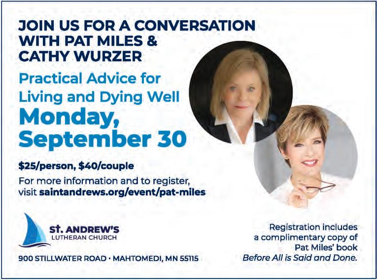 All are invited to enjoy food, entertainment, and family-friendly fun at St. Stephen Lutheran Church on Sunday, Sept. 15. Rally Day events begin with a worship service at 9:30 a.m. followed by a community picnic, live music, and games from 10:45 a.m. to 12:30 p.m. RallyDay is also an opportunity to sign up for youth and Sunday school programs. St. Stephen is located at 1965 County Road E, White Bear Lake. For more information, call 651777-1107 or go to ststephenwbl.org.