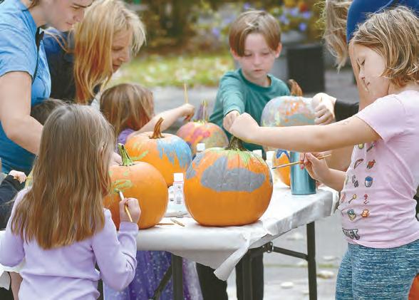 pumpkins and painted pumpkins available for purchase, pumpkin crafts, kids games, fire trucks and food.