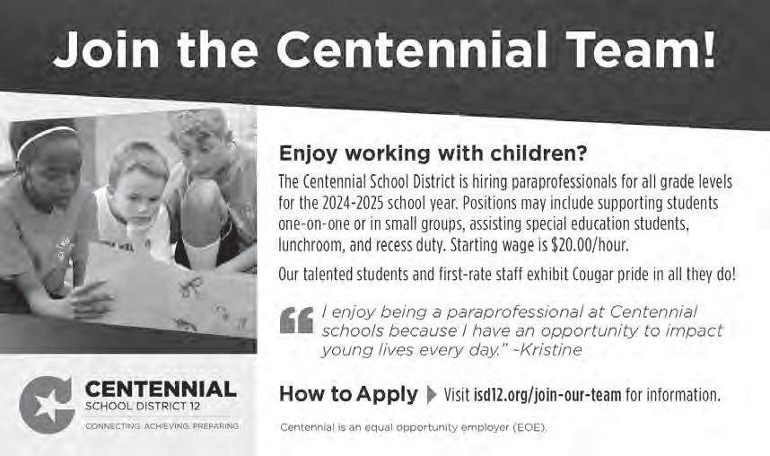 • Town Clerk Patrick Christopherson brought forward a Safety Commission recommendation for the installation of a threeway stop sign at Halper Way and Otter View Trail. The Safety Commission collected data with the help of residents and the Ramsey County Sheriff’s Office. “Residents presented a petition and emphatically requested—again— that there be a three-way stop,” Christopherson stated. “I’ve been in that area; I know it very well,” said Town Supervisor Steve Ruzek. “I agree that it should be done.” The board approved the Public Works project.