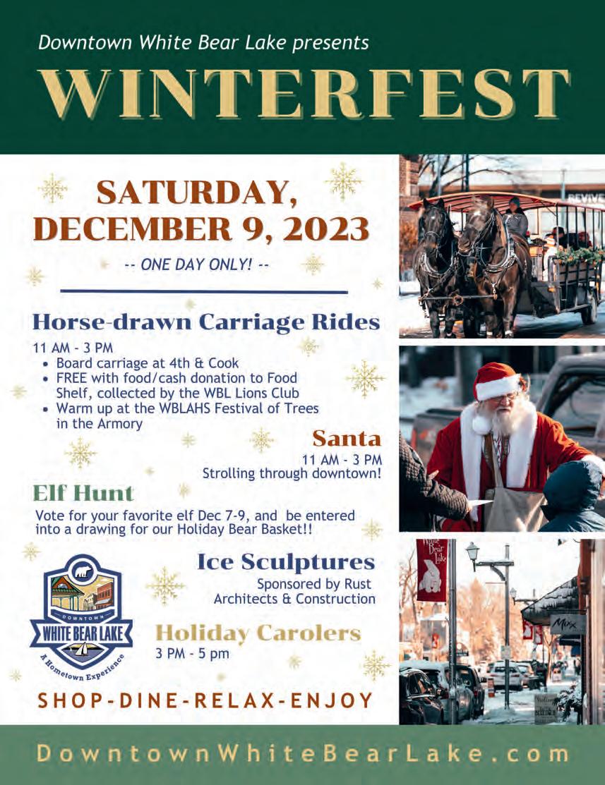 • Main Street Inc, White Bear Lake Rotary Club and the Lions Club plan to use the Railroad Park gazebo for a holiday event from 5 to 7 p.m. Thursday, Nov. 21. During the event, donations will be collected for the White Bear Lake Area Food Shelf.