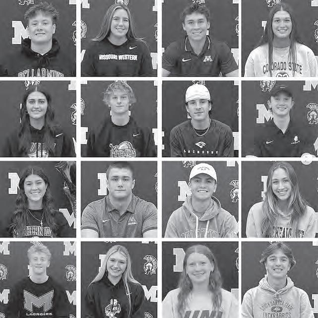 Congratulations to Mahtomedi’s 16 Class of 2025 student-athletes who have committed to NCAA Division I and II schools. At school, they held a National Signing Day recognition ceremony with families and friends. (Pictured from left to right top row) Sam Churchill, lacrosse, Bellarmine University; Addie Demars, lacrosse, Missouri Western State University; Ethan Felling, baseball, University of Minnesota; Silvie Graetzer, volleyball, Colorado State; Anna Greene, basketball, University of Northern Iowa; Landon Kruse, lacrosse, University of Detroit Mercy; Frank Lombardi, lacrosse, University of Montevallo; Oskar Magnusson, lacrosse, Bellarmine University; Alli McCleery, soccer, University of Northern Iowa; Evan McGuire, wrestling, University of Minnesota; Thomas Meader, golf, University of North Dakota; Faith Peper, soccer, Morehead State (Kentucky); Henry Roelofs, lacrosse, Maryville University; Annie Tanner, lacrosse, Niagara University; Aynslea Ulschmid, soccer, University of Northern Iowa; Jacob Wilson, golf, South Dakota State University.