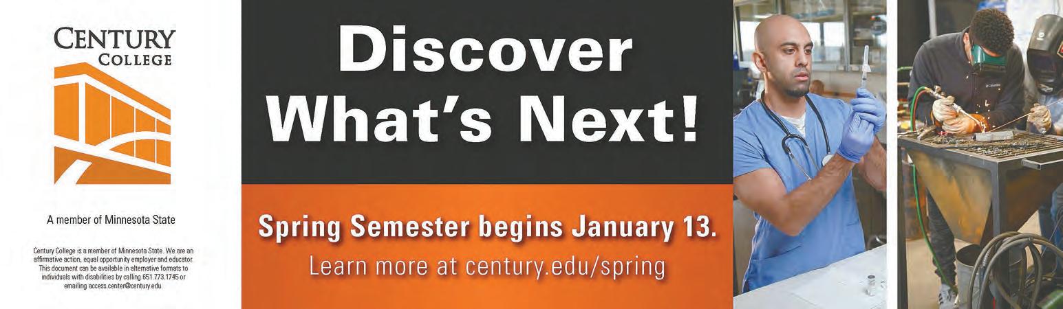 The White Bear Lake Area School Board next meets at 5:30 p.m. Monday, Nov. 25, for its monthly work session. Attend at 4855 Bloom Ave. or livestream the meeting from isd624. org/about/school-board/meetingmaterials. $99,840 with similar benefits.