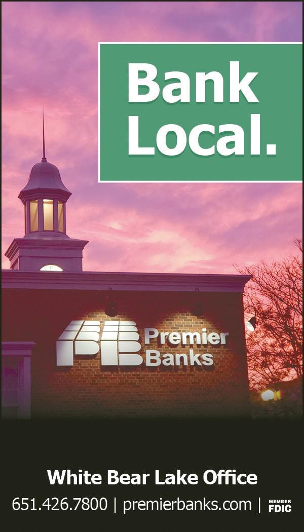 support through our subscription program. You can find local news, information and features in the White Bear Press, published weekly and distributed to homes and newsstands throughout the communities of White Bear Lake, White Bear Township, Dellwood, Birchwood Village, Pine Springs, Grant, Willernie and Gem Lake. Visit us online at presspubs. com. If you have news to share or other ideas for this guide or the weekly paper, contact Amy Johnson, interim editor, at 651-407-1227 or whitebearnews@presspubs.com. The newsprint pages between the cover are produced from sustainable forests. Many of the inks we use are derived from soy-based products, and we ask you to please recycle by sharing it with a friend or neighbor when you are done. If you are an advertiser and would like to be involved in next year’s edition, please call 651-4071200 and ask for a Press multimedia representative.
