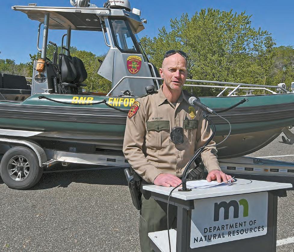 Leading into the start of the summer boating season, Minnesota Department of Natural Resources Conservation Officer Matthew Miller shares water safety tips and best practices near the boat landing at White Bear Lake County Park. Some of the water safety tips include avoiding the consumption of alcohol while operating watercraft, minimizing distractions, making sure you have proper and working safety equipment and having enough life jackets on the boat. He says that 90% of boating deaths in Minnesota involve people who aren’t wearing life jackets. Boaters should be aware of a new law expanding training requirements starting July 1.