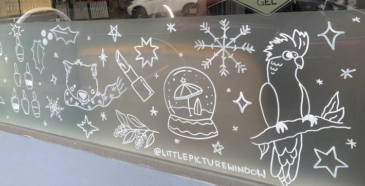 Take a stroll and see the stunning window art painted by talented local artists Sophie Elyse, Emma Lyn Winkler and Lou Endicott. Their unique designs are on the windows of more than 65 shops.