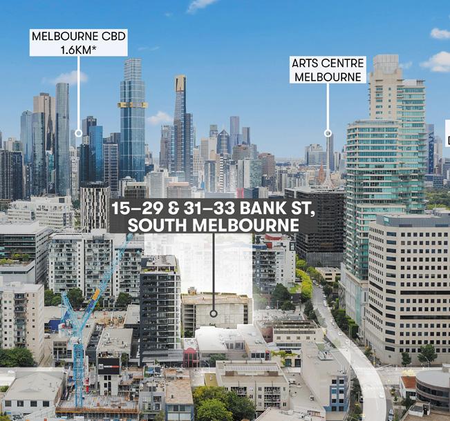 Surrounded by a diverse combination of residential apartments, commercial offices and vast lifestyle amenity Set to benefit from the upcoming ANZAC Train Station with an expected 2025 completion date – part of the $11bn Melbourne Metro Tunnel Project Neighboring landmarks surrounding destinations include the South Melbourne Market, Clarendon Street Shopping Precinct, Shrine of Remembrance, Royal Botanic Gardens and Albert Park Lake, all accessible via St Kilda Road tram links Immediate connectivity to Southbank –Crown Casino Entertainment Precinct, Melbourne CBD, as well as South Eastern corridor via major arterials Kings Way and the Monash Freeway (M1)
