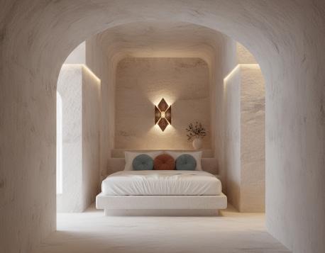 Perched on a rocky promontory high above the Ionian Sea, the iconic San Domenico Palace welcomes you to a 14th-century convent reimagined. Framed by the dramatic landscapes of Sicily’s east coast, the interior has a rich legacy in art not only within artwork itself but the timeless beauty that is portrayed in the interior design of the hotel. Throughout the hotel, you can feel the heritage it holds, with exposed stone sourced from the land beneath, pillars that portray incredible detail, and the everevolving culture within the walls, all coming together to create a perfectly detailed Mediterranean-style interior. The goal of the San Domenico Palace was to provide a visually engaging and emotionally inspiring link between the past, the present, and the future, immersing guests in an unforgettable journey through time and artistry.
