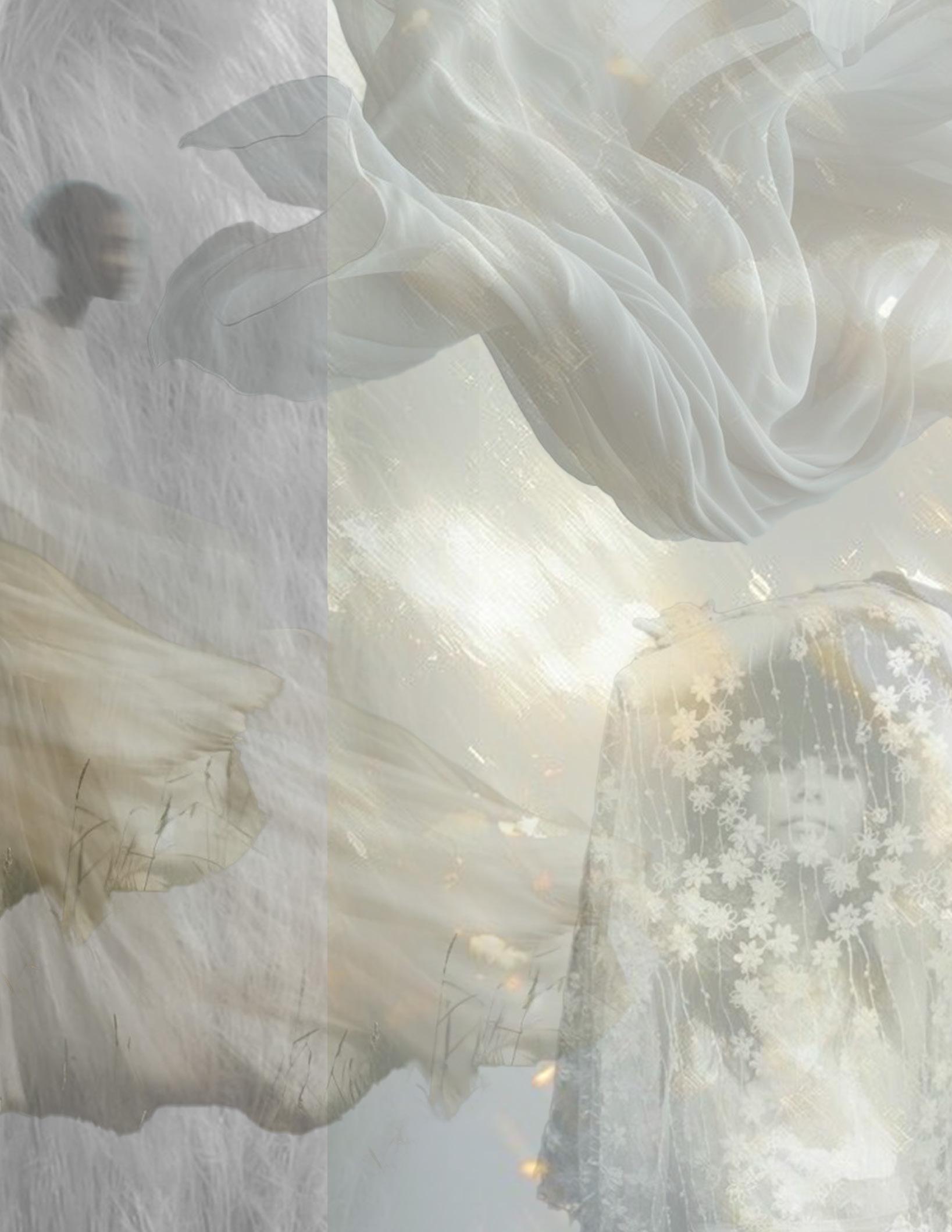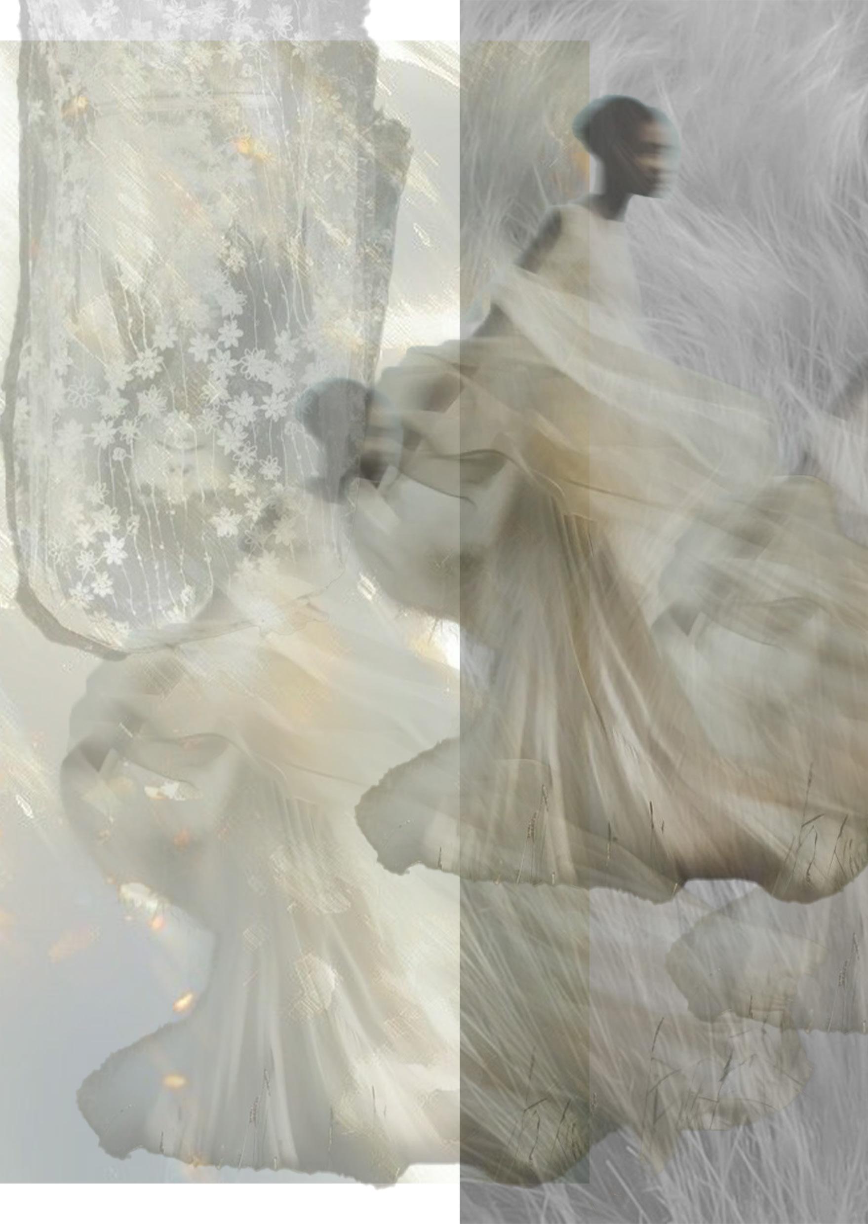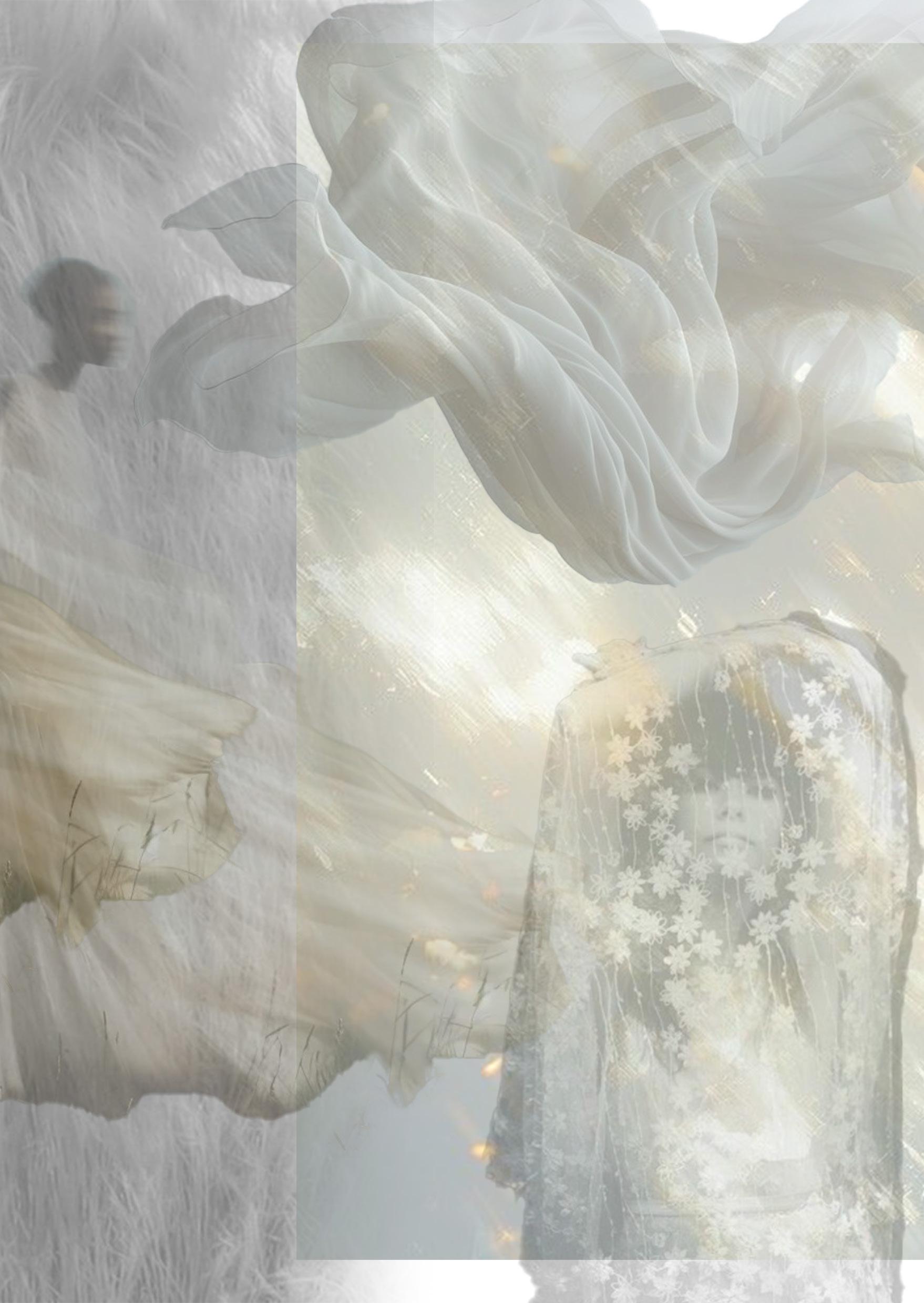 Sonance is a collection where light, airy fabrications are used to create movement and a sense of unity. Delving into impressionist artworks by Claude Monet, where brushstrokes were done so in a rushed manner, creating movement and softness. In impressionist artworks, the way the light moves was of utmost importance. The tactile quality of materials being used within the collection adds these impressionsist like intricacies of texture, depth, visual interest as well as a sensory experience.