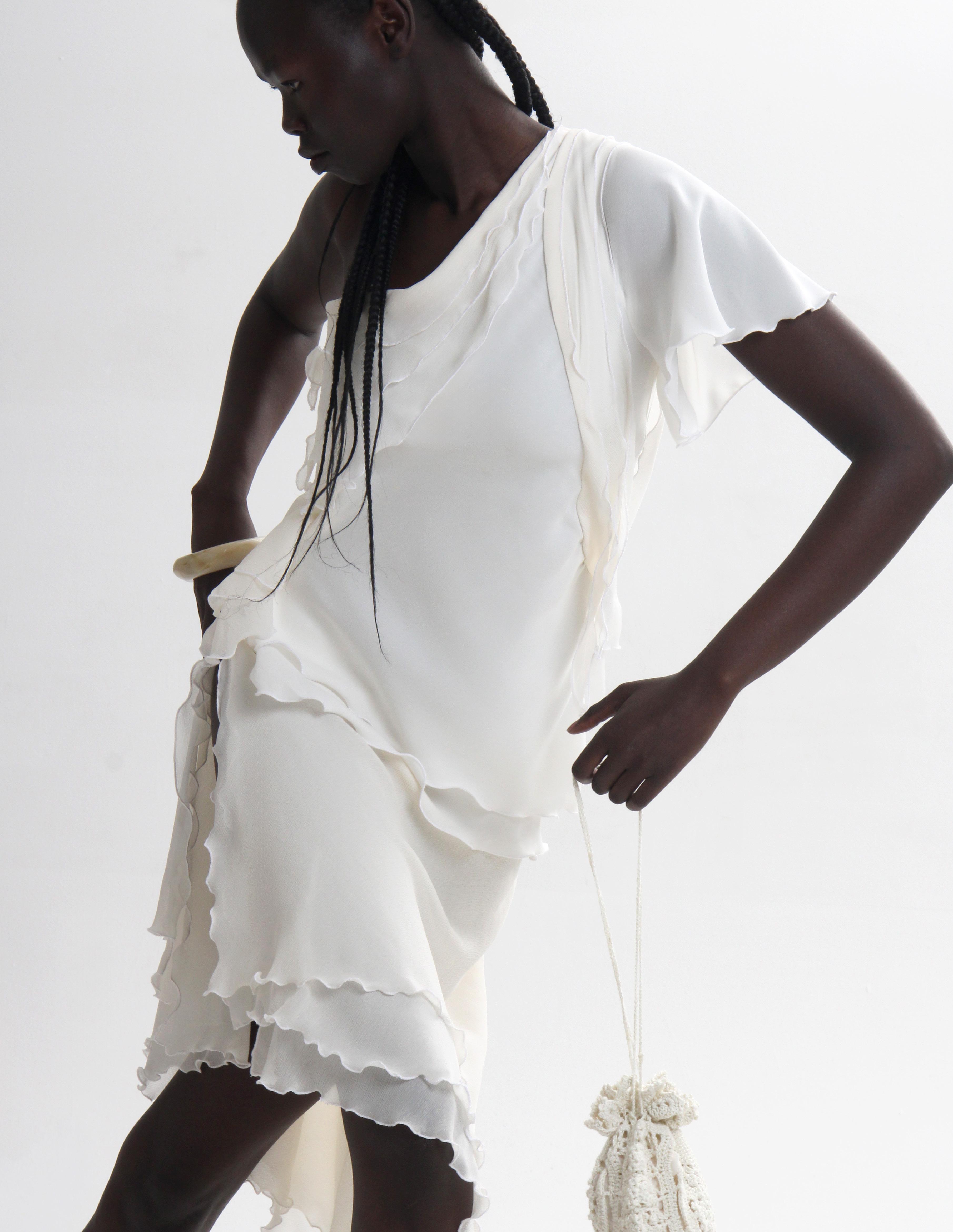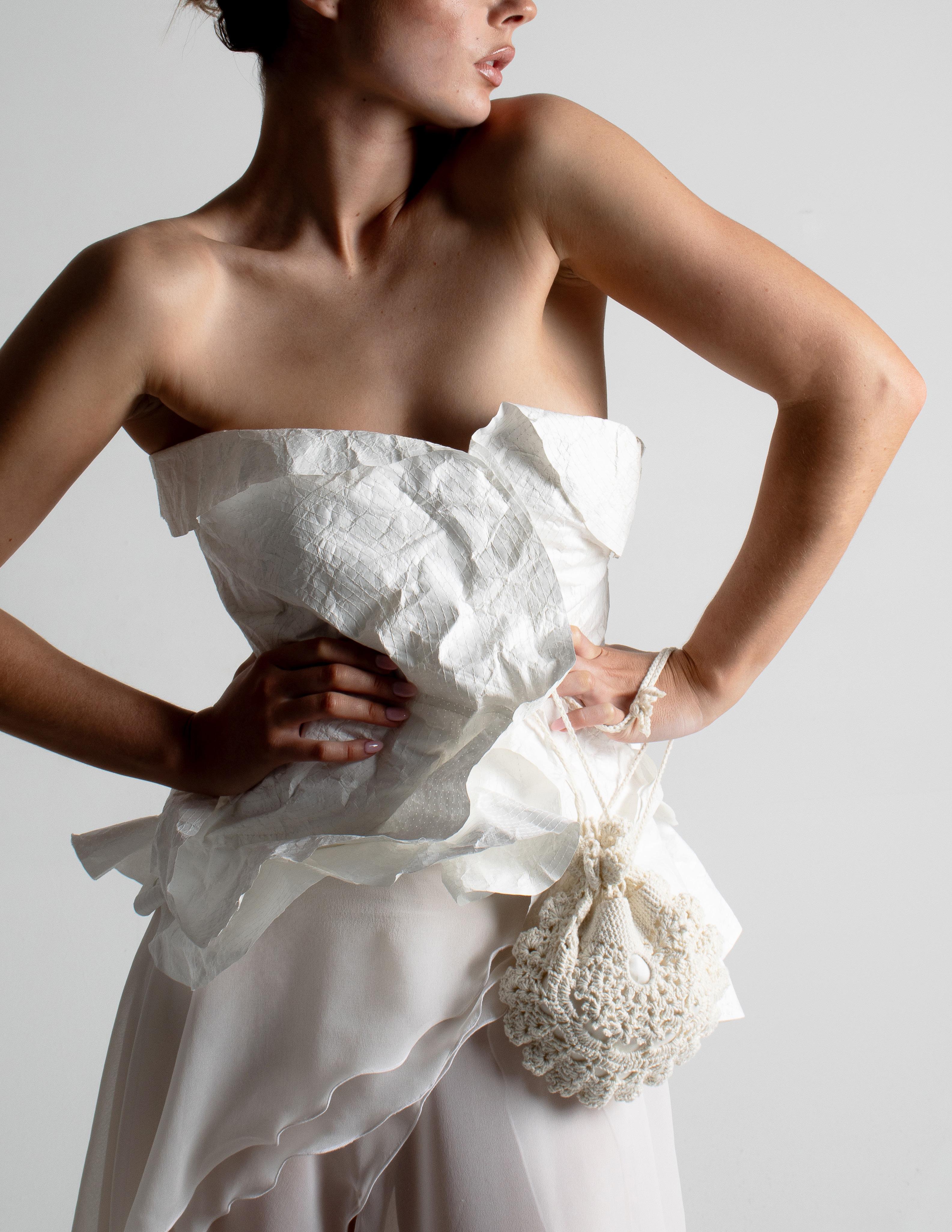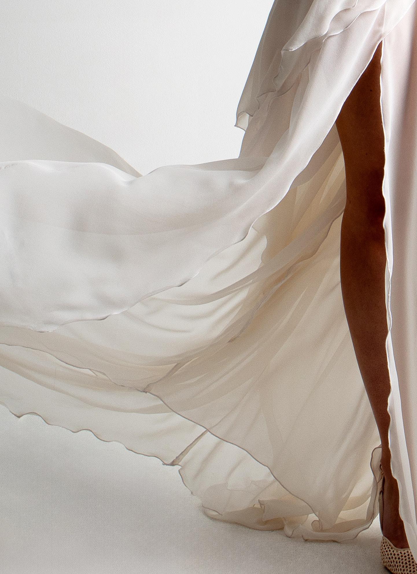 Sonance is a collection where light, airy fabrications are used to create movement and a sense of unity. Delving into impressionist artworks by Claude Monet, where brushstrokes were done so in a rushed manner, creating movement and softness. In impressionist artworks, the way the light moves was of utmost importance. The tactile quality of materials being used within the collection adds these impressionsist like intricacies of texture, depth, visual interest as well as a sensory experience.