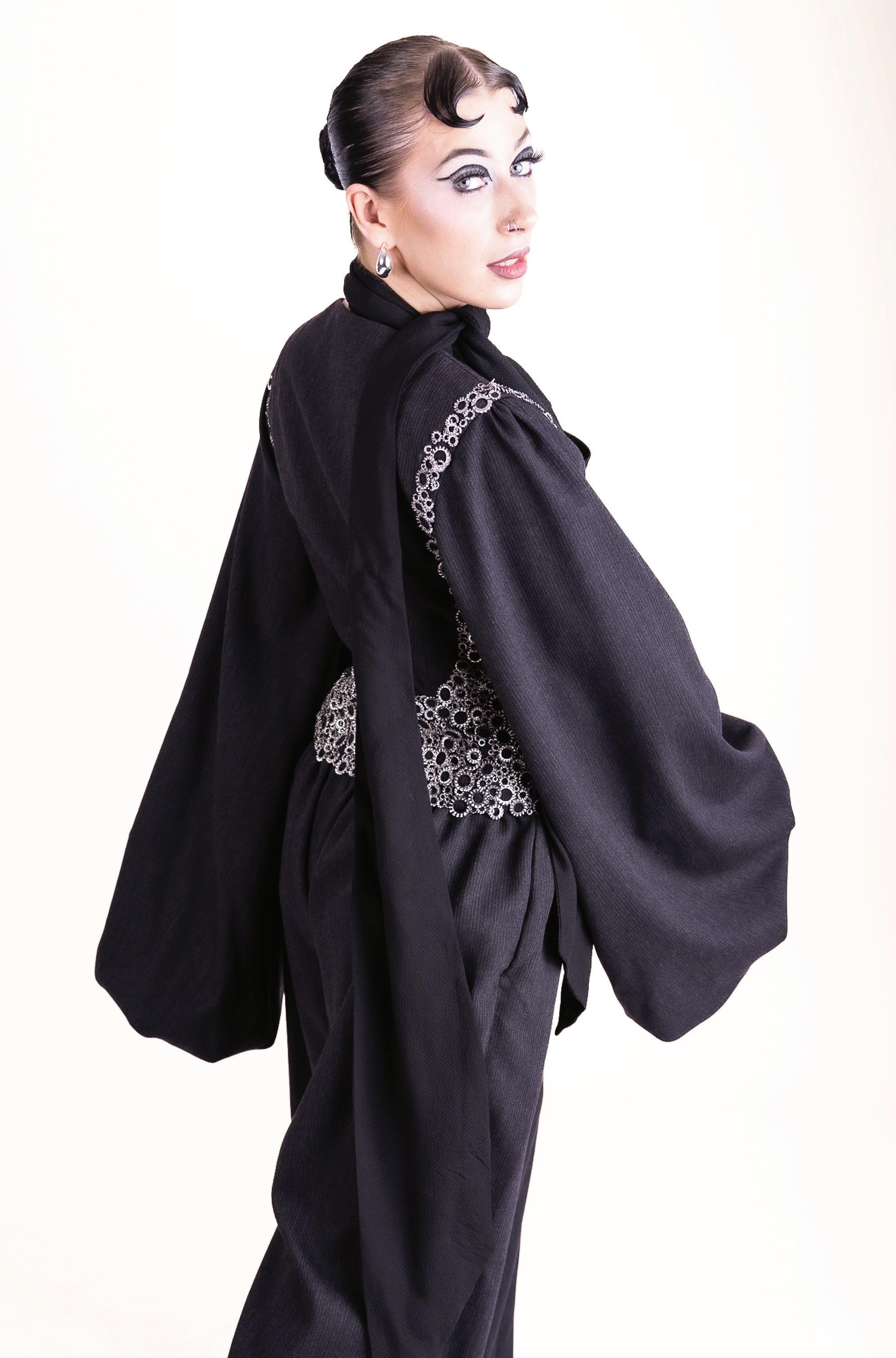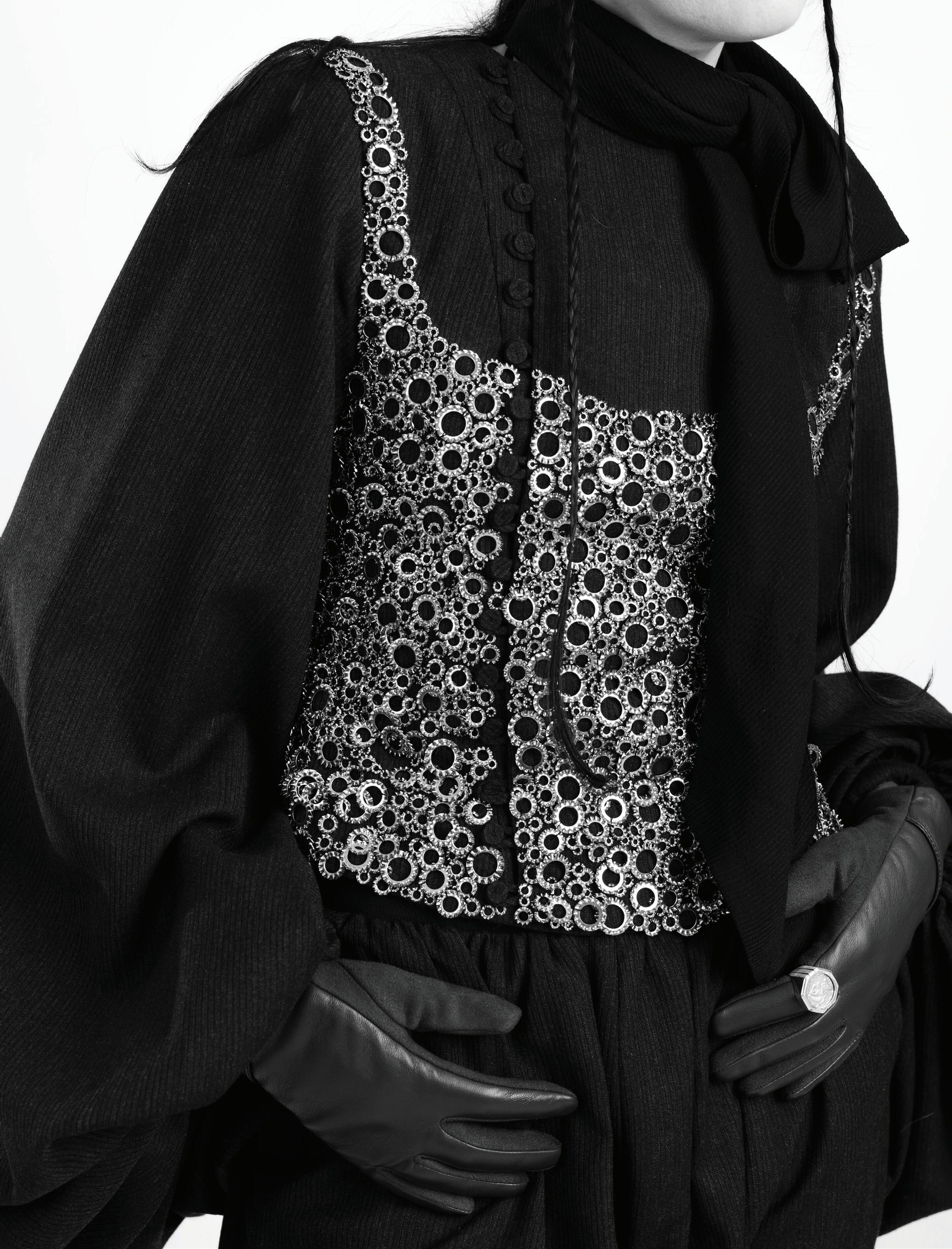 ‘morning breath’ is a selfish exploration of the inner emotions shown outward, the overwhelming consumption and damage grief can deliver upon oneself. taking inspiration from victorian era mourning attire, which correlated with the public display of mourning and grief, through fashion. ideas of colour, silhouette and fabrication from the mourning attire period are directly adhered to in the collection. in marriage with the conceptualisation of personal experiences of grief with uses of textural pieces, gathering and layering to create weight and tightness in practice and emotionally. the morning breath collection encapsulates these notions with an overarching focus on creating pieces of art that invite the wearer to reflect on and confront their grief.