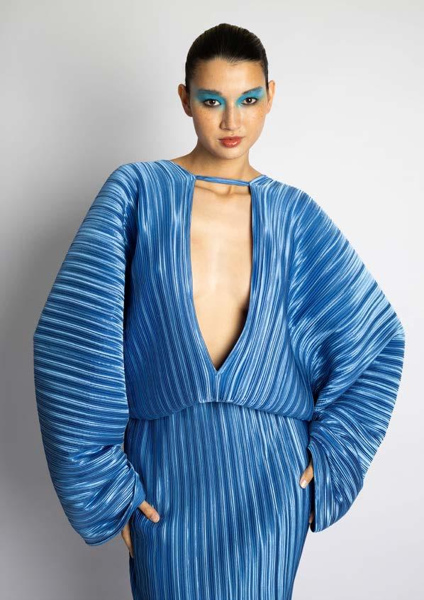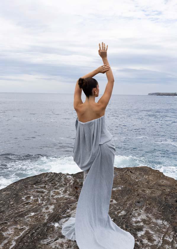 whose connection to the ocean embodies the Newcastle surf Lifestyle. Their stories and the accompanying images captures sisterhood, surf culture, and retro vibes. The final chapter moves into interpreting the curves, currents, and textures of water through garments, silhouettes, and compositions. As a creative, my work is shaped by memories of the ocean, its colours, patterns, and the way it makes me feel. These influences have guided every part of this editorial. Aqua Vitae is more than a visual project; it’s a reflection of where I come from, what inspires me, and how I see the world.