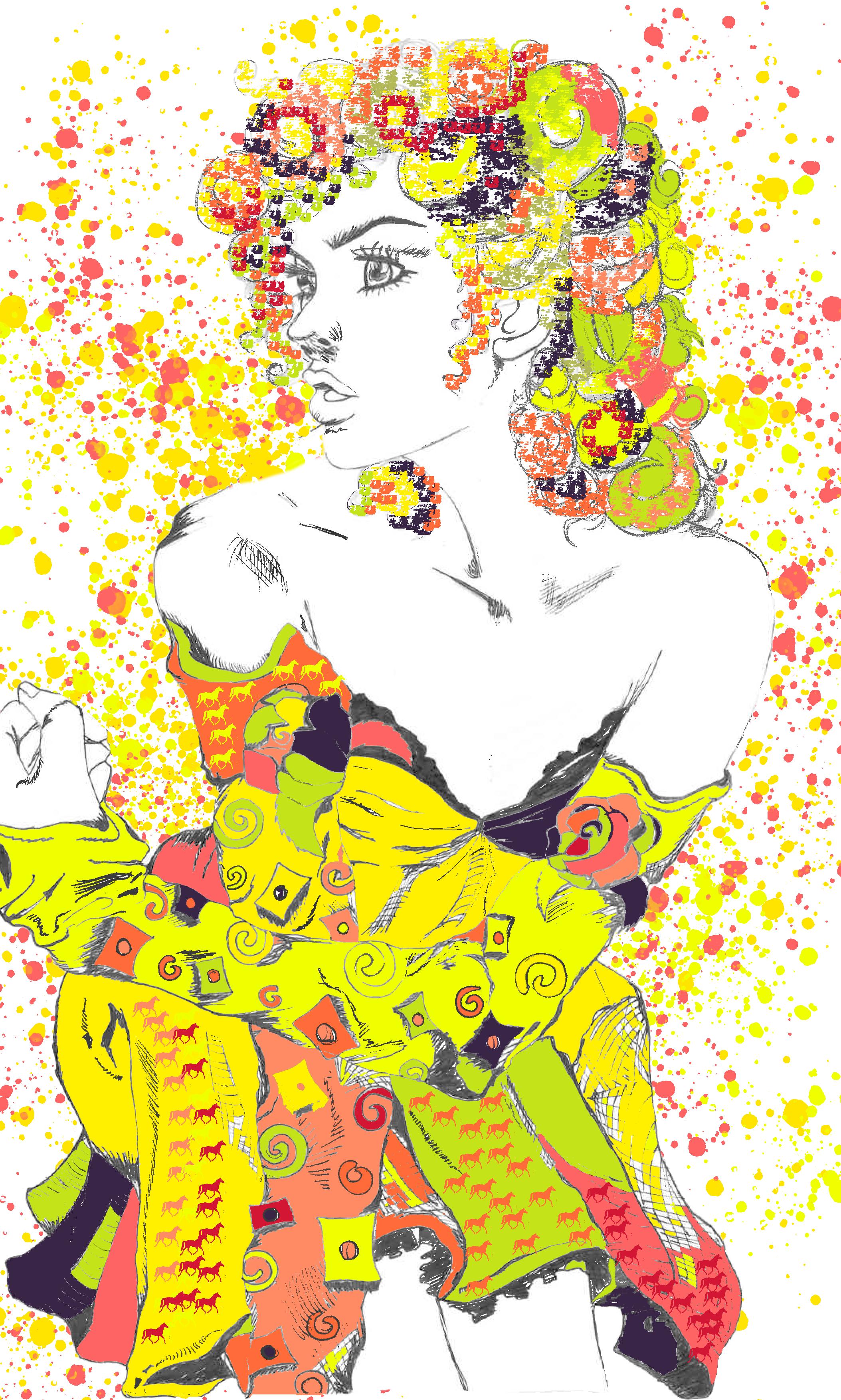towards women. With Annie Oakley as an iconic figure for women who was remembered as the legendary frontwoman and an advocate for women to learn a sport that was predominantly dominated by men (Anderson, 2018), this collection is intended for strong women in modern day society who embody their self liberation with elegance. The collection adds a contemporary spin to both of these cultures by incorporating elements of print and colour, hardware, and volume yet slick aesthetics that are designed to instil confidence in the client in what they wear and represent, and thus in what they can see in my brand. My brand aspires to include the ‘art of living,’ which is based on the concept of living a life that one enjoys. I want to convey this message by experimenting with various mediums.