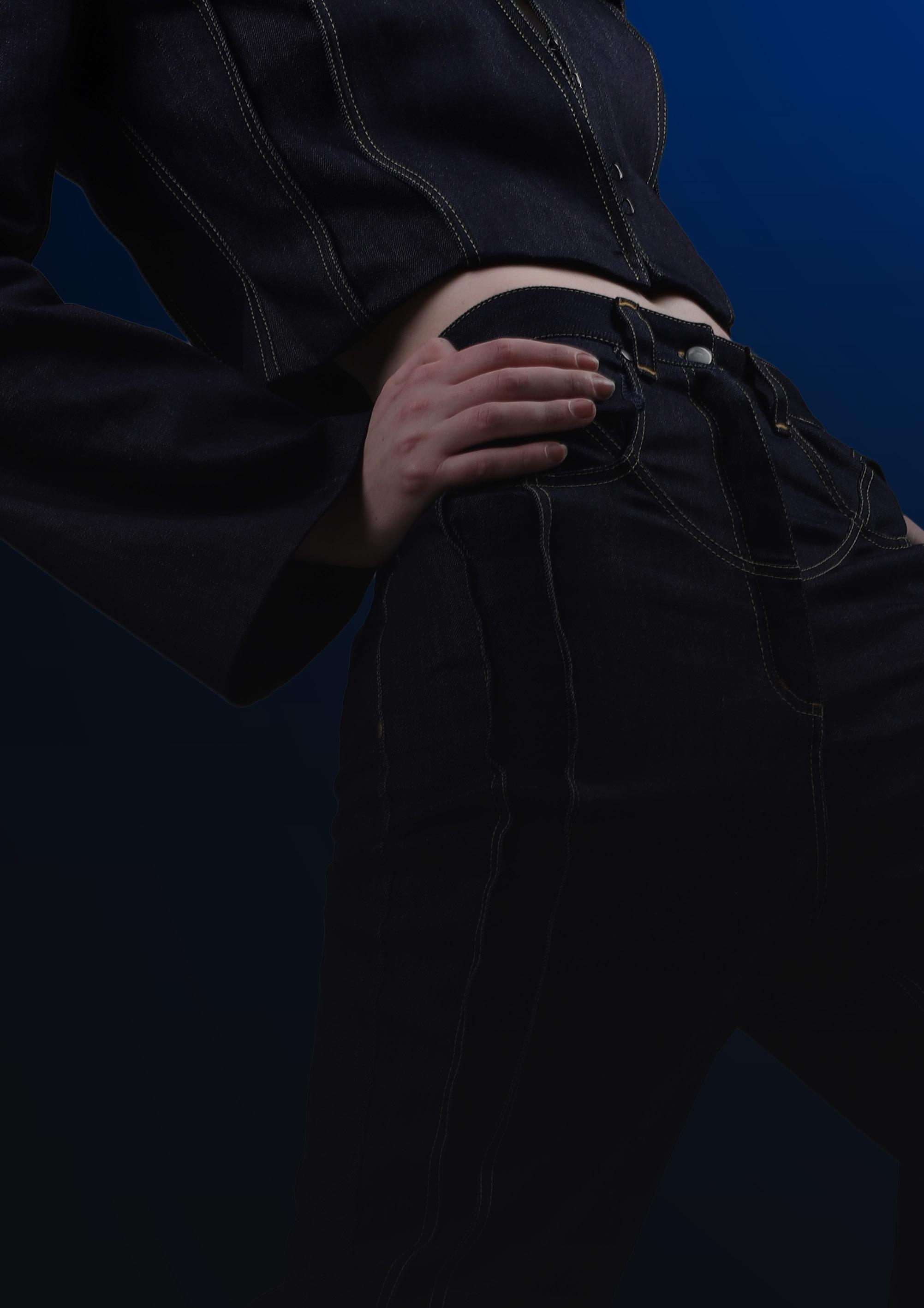 “Redirection” embodies the act of change itself. This collection represents an evolution from past ideals into a newly defined direction. Built from luxe indigo denim and refined through sharp, intentional design lines, the collection embraces transformation with a sleek, contemporary aesthetic.