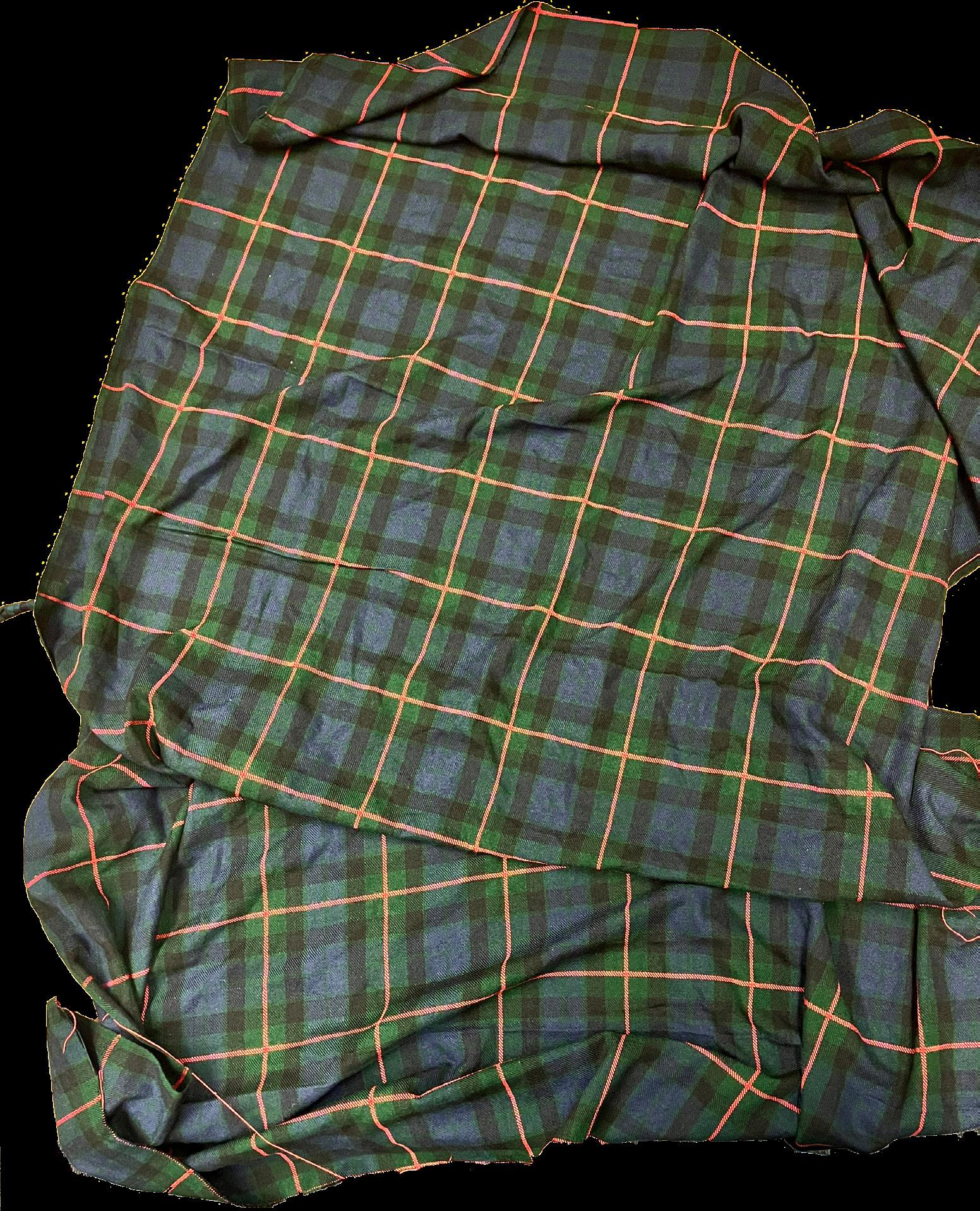 Inspired by botanical textures and Highland craft, tartan wool is manipulated into spiraling textural rosettes. Strips of fabric are wrapped around thick macramé cord and sewn into coiled forms, their sculptural quality echoing native blooms and ceremonial detail. These handmade spirals become motifs of memory and inheritance,