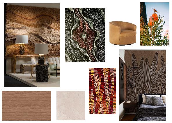 The material chose will consist of high pattern and texture through soft furnishings and wallpapers and tiles, use of sustainable wood from New Age Veeners for floor ing and softer concrete for walls. Ensuring the use of sustainable materials being used during this project is crutial as the longevity of this hotel is very important to the client.