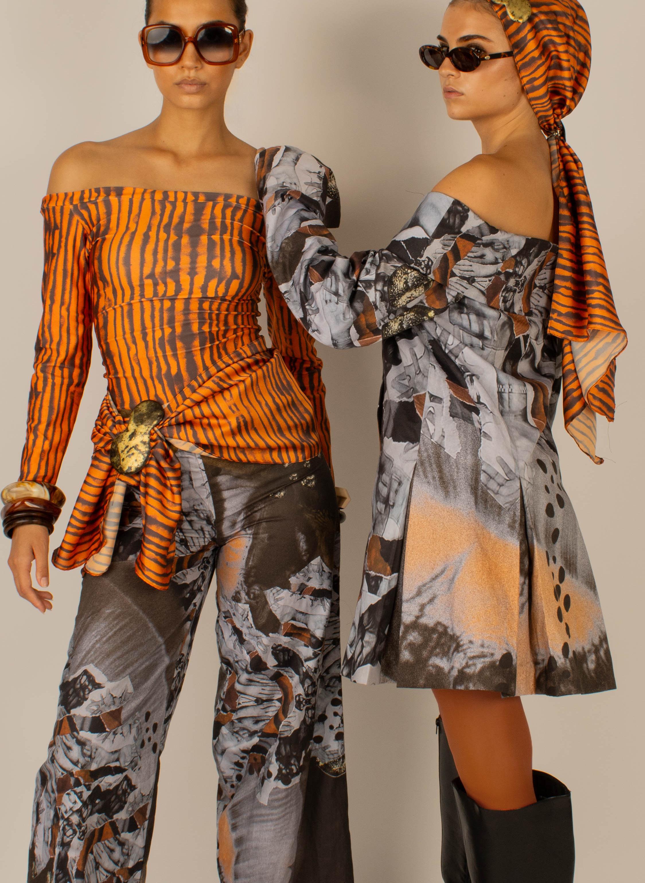 At its heart lies connection and sisterhood, expressed through the harmony between looks. The two matching coats in the signature ‘hands full’ print and the warm, earthen brown wool. Their symmetry is intentional, and yet their personalities are unique. Reminiscent of times where sisters have locked eyes at family functions only to realise, they are wearing the same jeans and similar tops, arguments over which one must go and get changed, and the aggressive yelling that ensues when a piece of clothing that you lost months ago randomly appears on your sister’s back. Having a sister will change not only you but your wardrobe, simultaneously doubling and halving it.