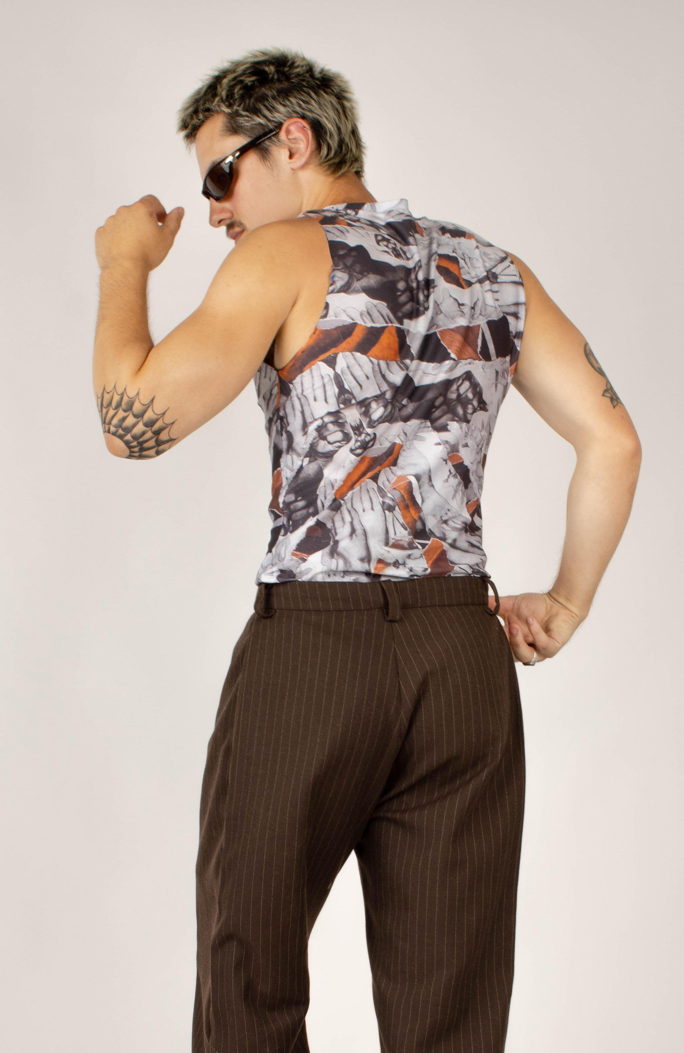 NEXT STATE PRINT: SATIN ORIGINAL PRINT - WORN PINSTRIPE 100% polyester