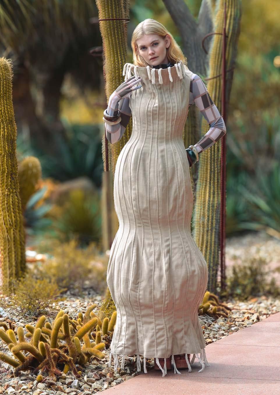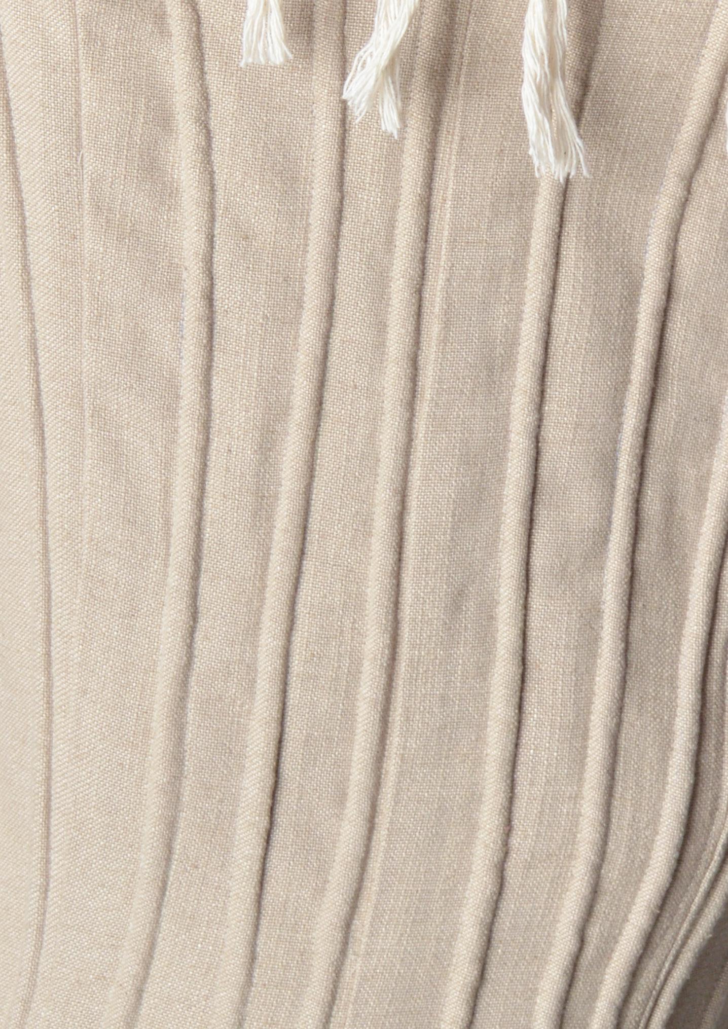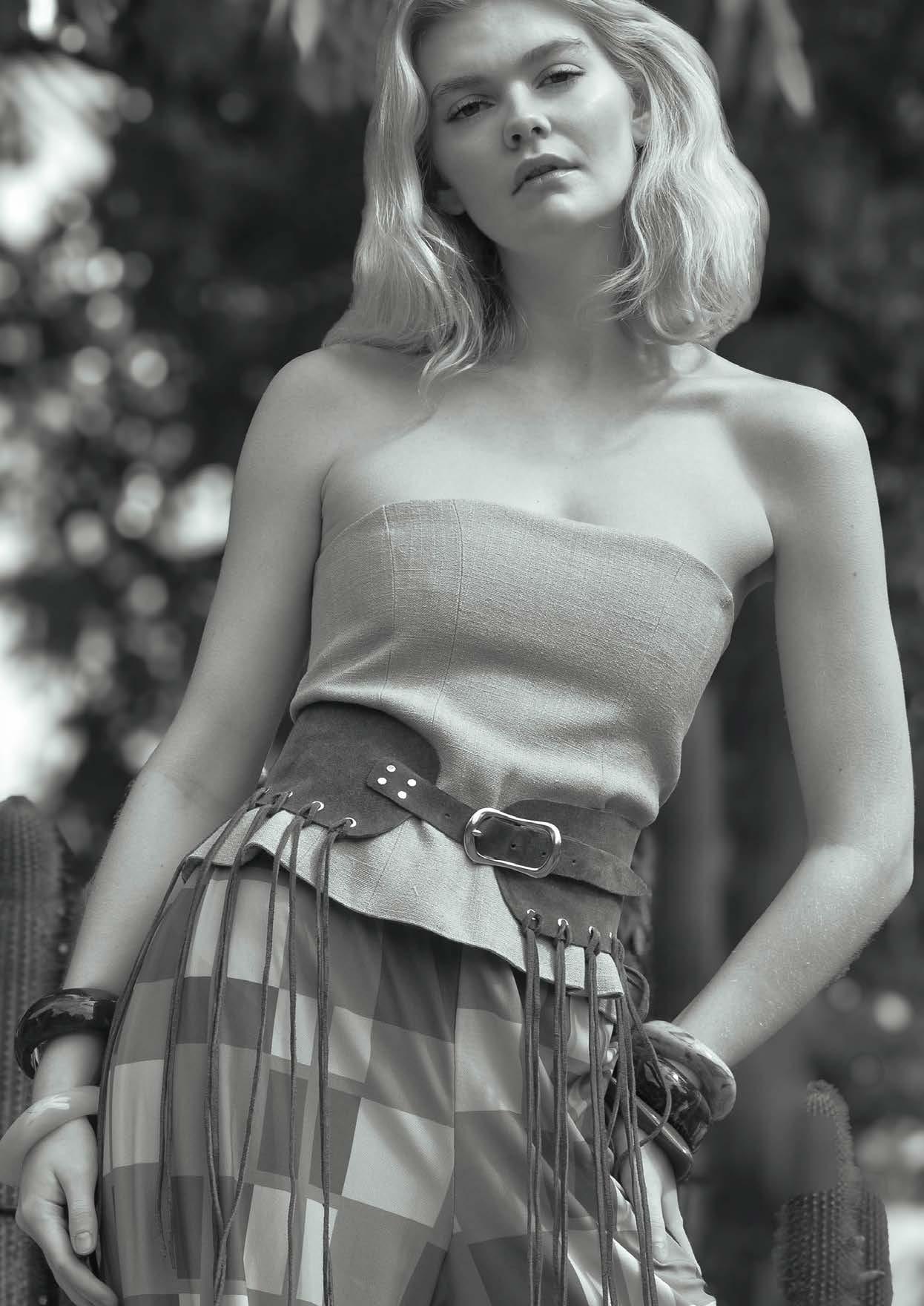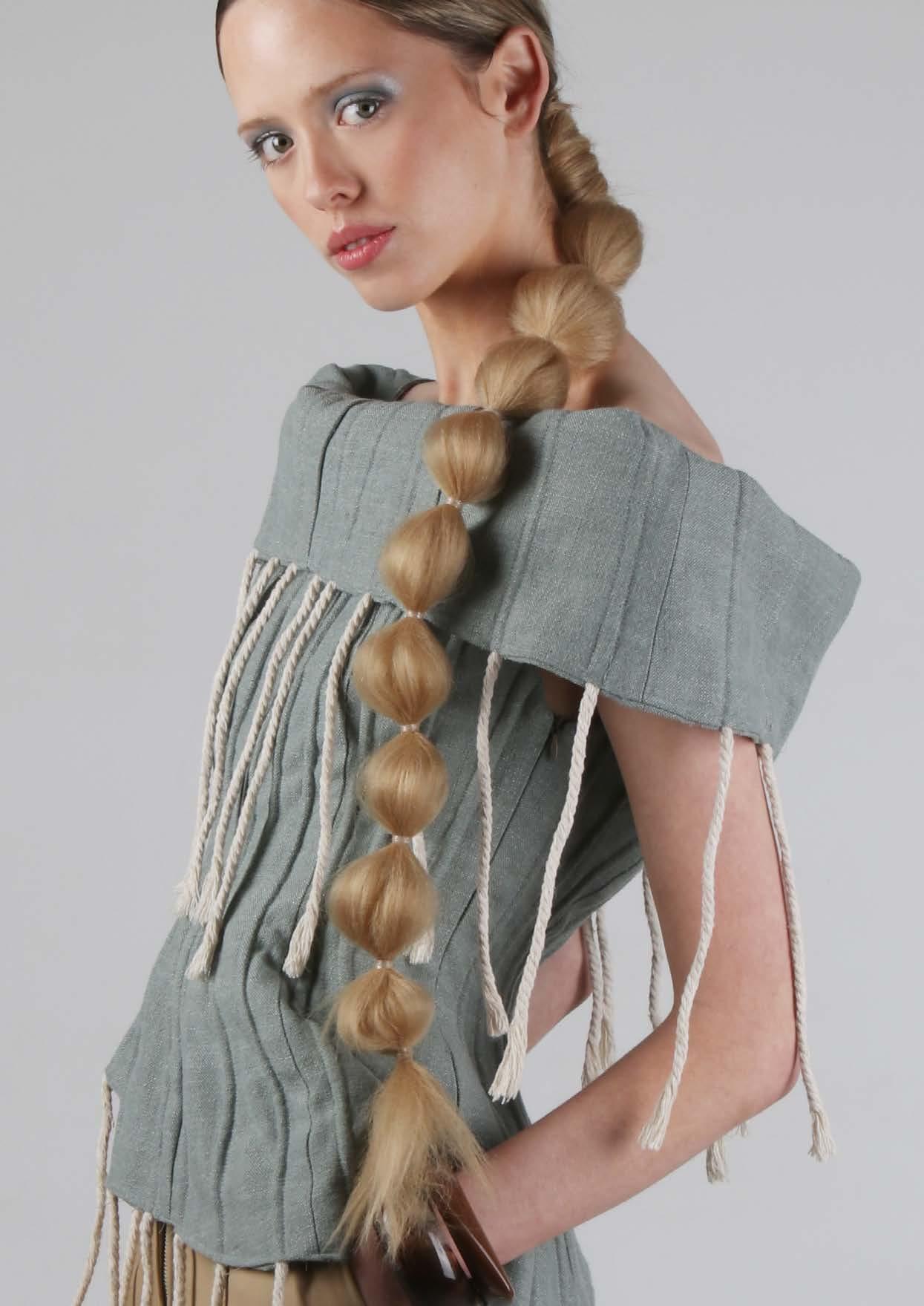 that extend and refine the silhouette. As each cord leads into softly frayed ends, it also introduces a sense of gentle movement which brings the collection to life. Meanwhile, geometric print lends structure and precision, balancing the collection’s organic tactility with measured, intentional form.
