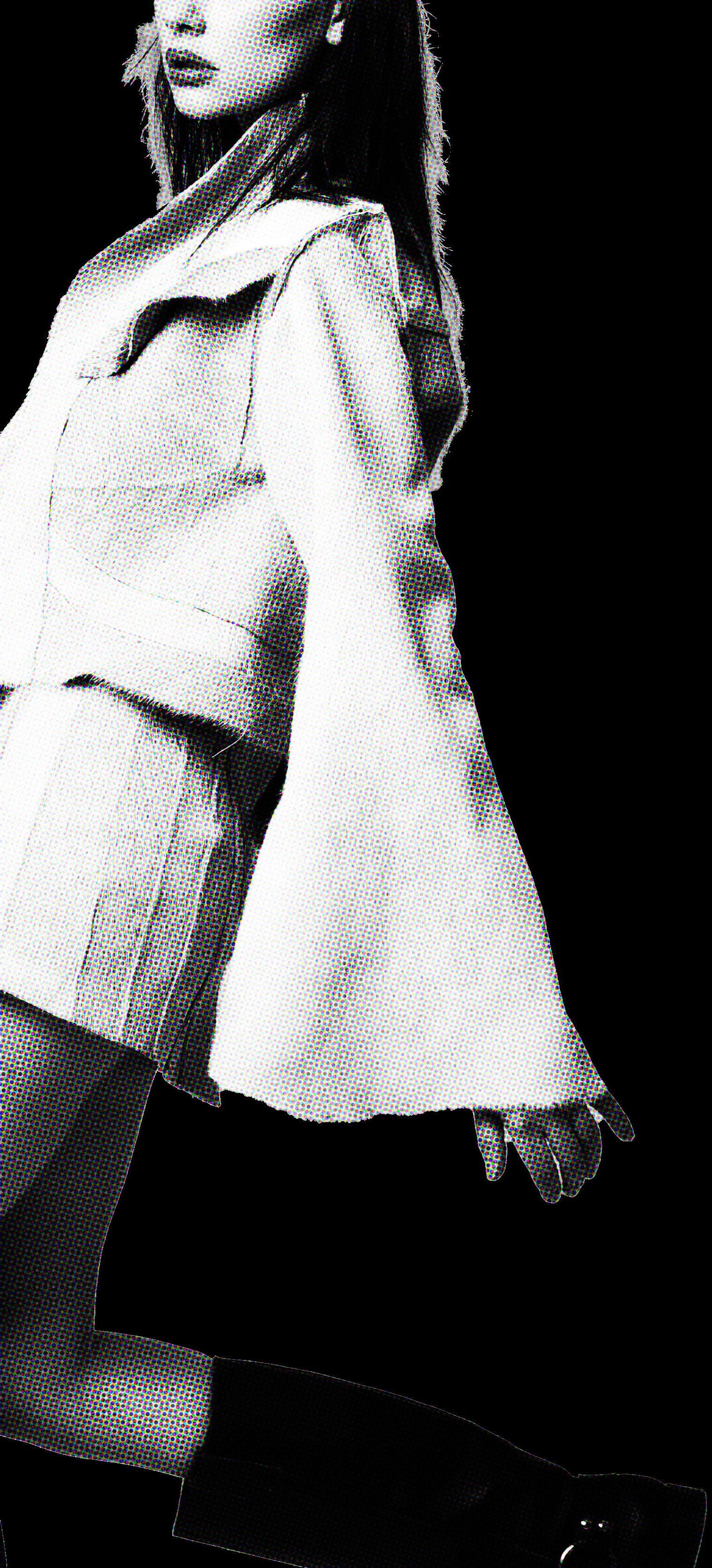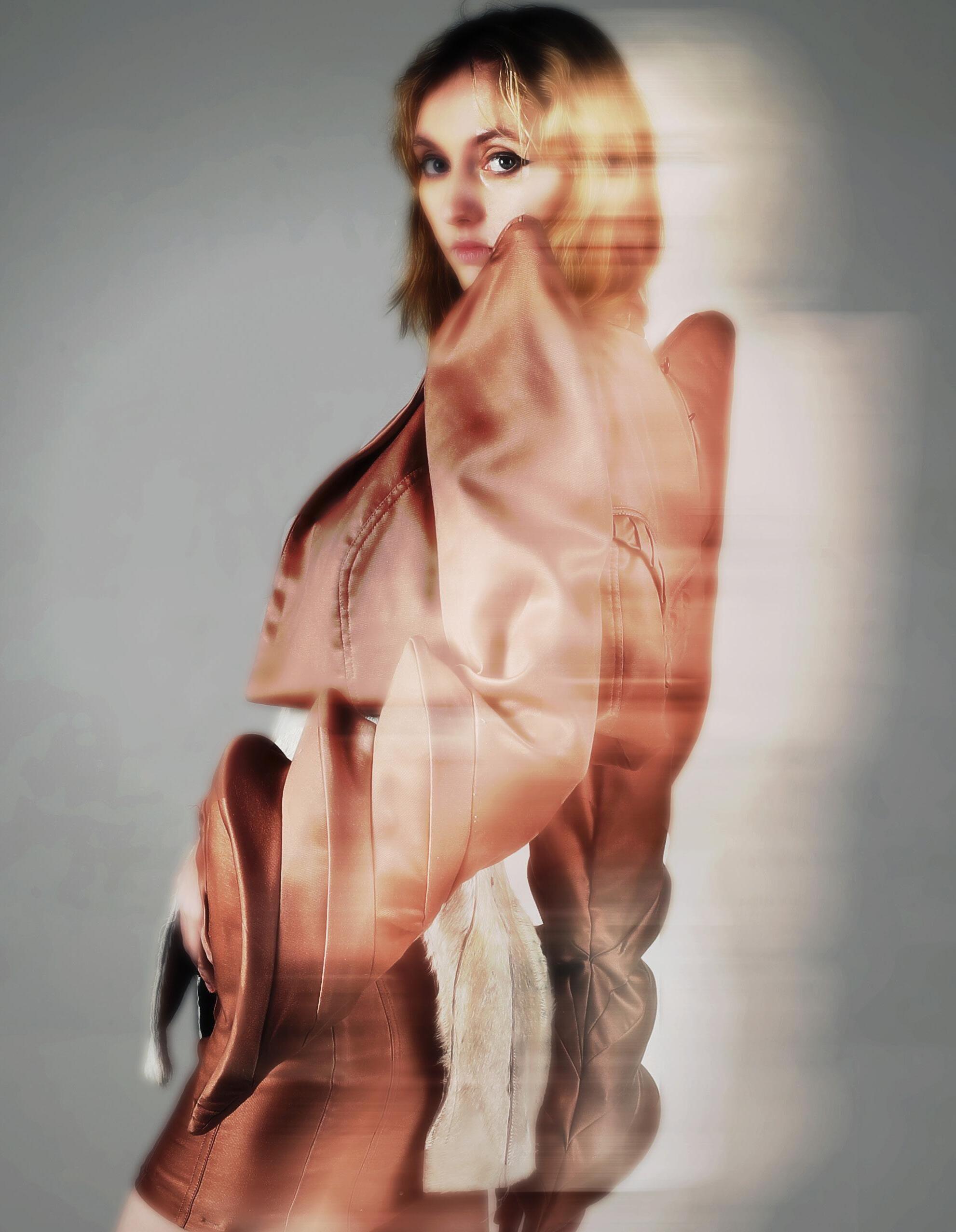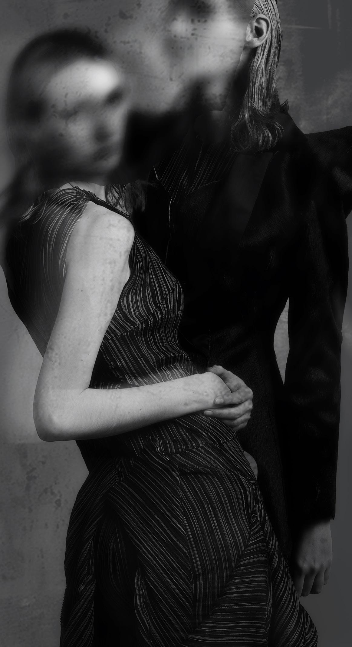 Of Flesh and Form delves into the entanglement of the human body, material, and transformation. The collection confronts fashion’s history of carving power, beauty, and status out of the natural world, questioning how the human figure is elevat ed through the literal and symbolic use of other bodies.