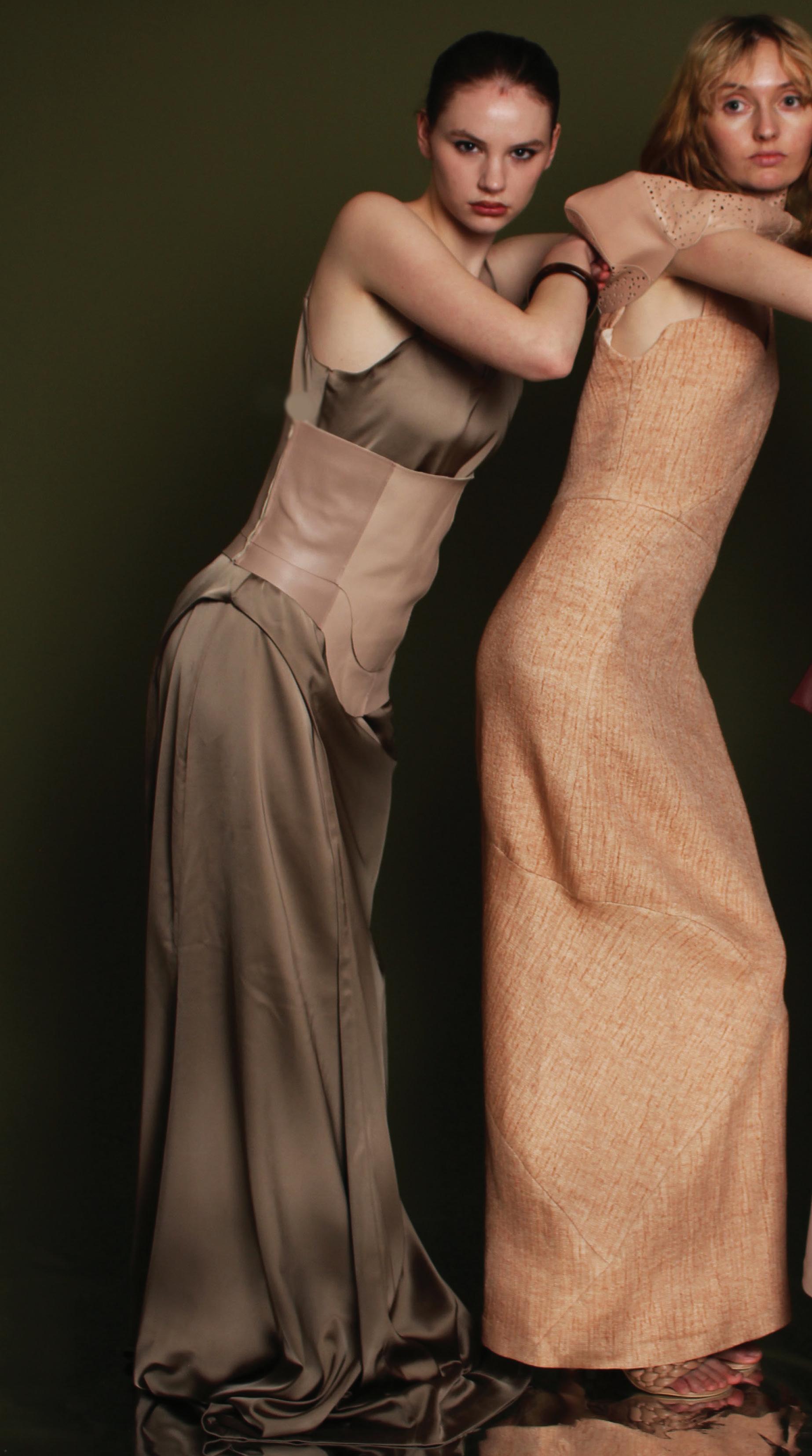 Shells evoke cultural memory, especially in Indigenous Australian contexts, where they signify identity and kinship. Soft metallics, fluid textures, and meditative colors reflect continuity and transformation. Drawing from Barthes and Evans, the collection speaks through silhouette and texture—garments as emotional armor, cultural narrative, and expressive tools of belonging.