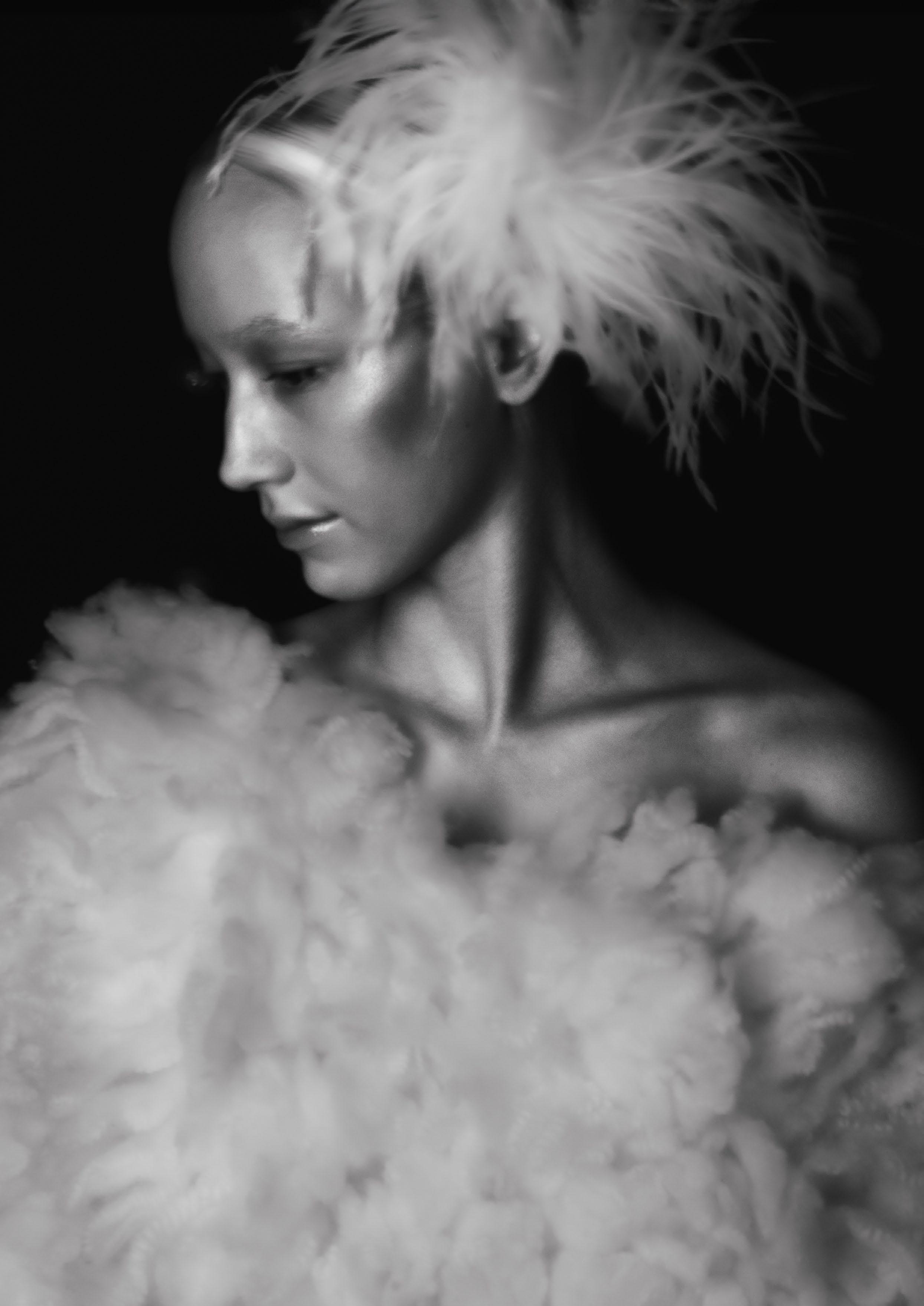 Tara wears feather bandeau dress by BENJAMIN RANDO