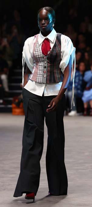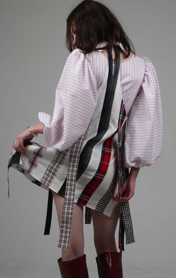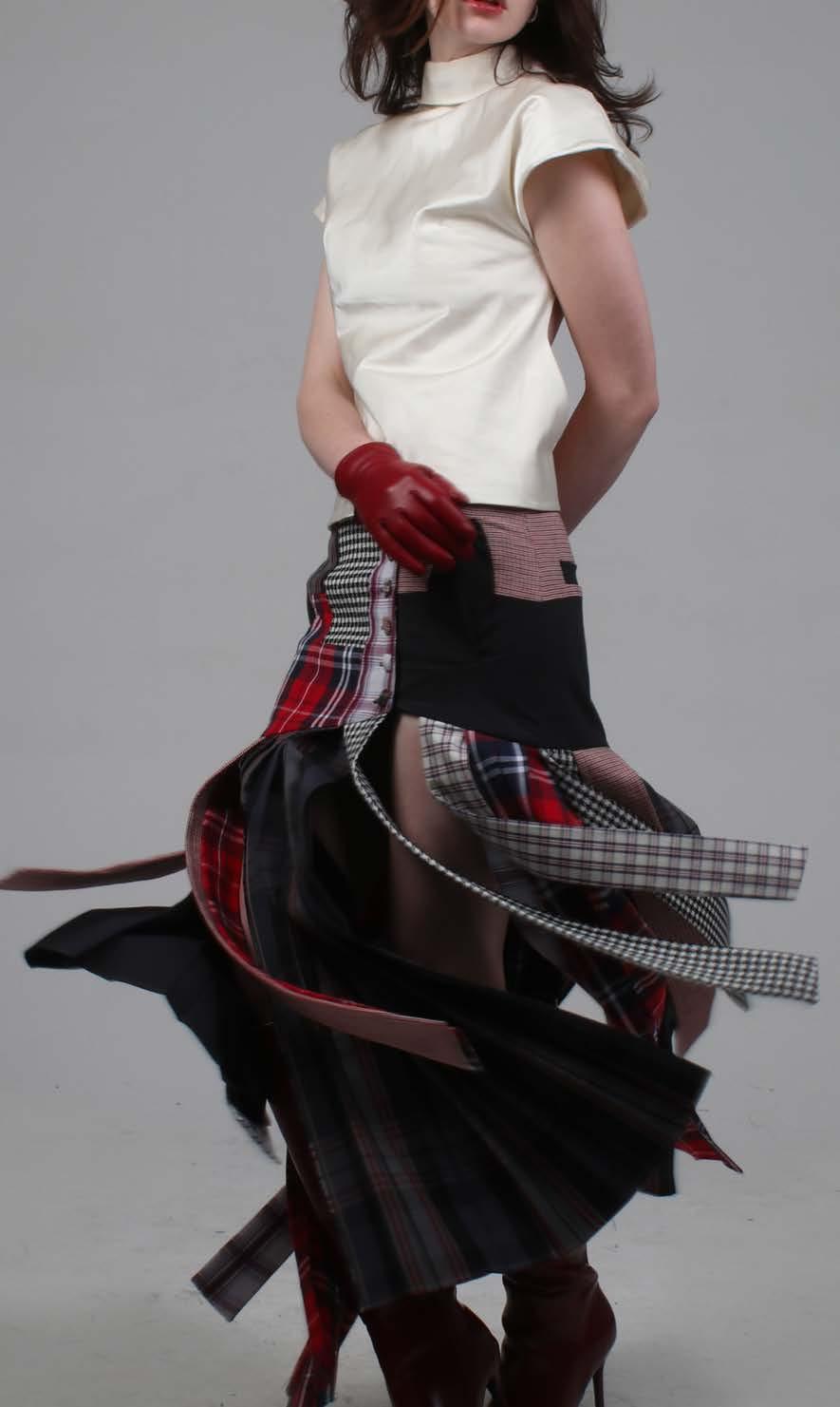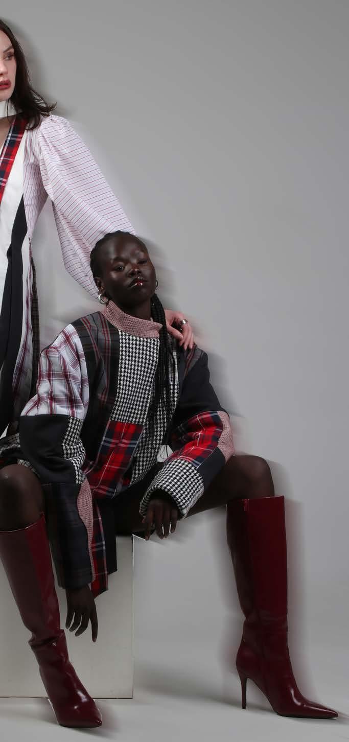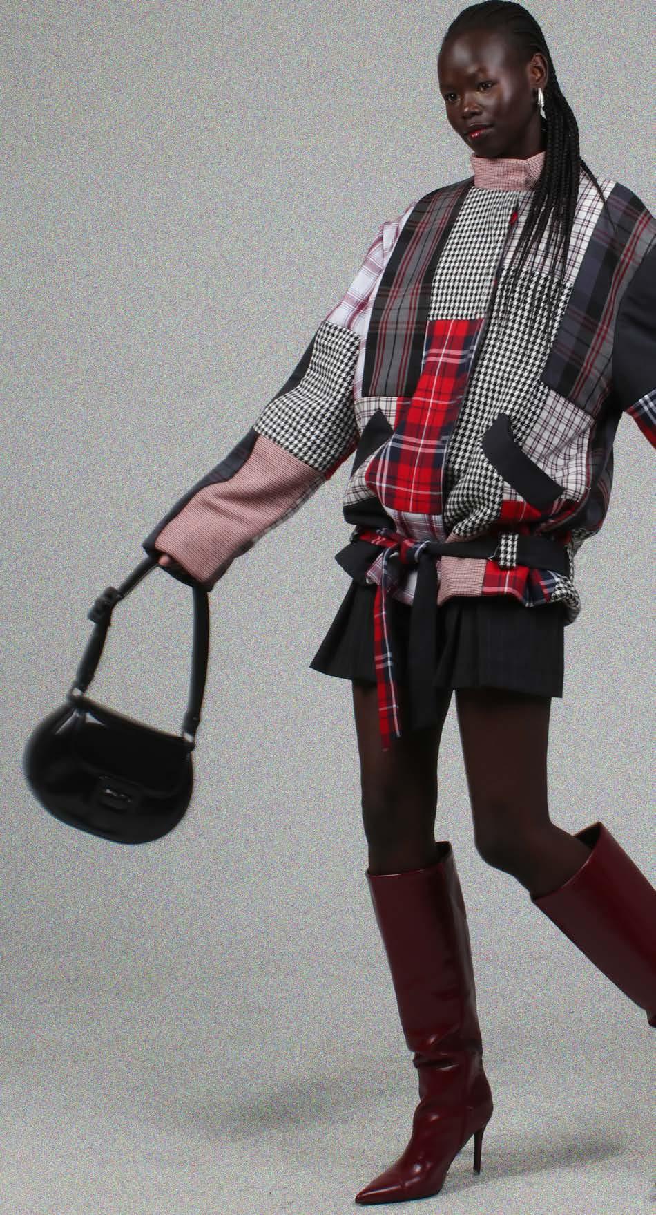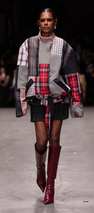 Plaid is a central motif, reworked across textures and tones that nod to both school uniform classics and era defining stagewear. Accessories echo the era’s glam rock sophistication with knee-high boots, bold earrings and leather gloves. In the modern context, this is more than a retro homage its a reinterpretation of iconic style through today’s lens of individuality and fluidity. The collection invites wears to embody confidence, nostalgia and freedom, grounded in timeless influences with a contemporary edge.