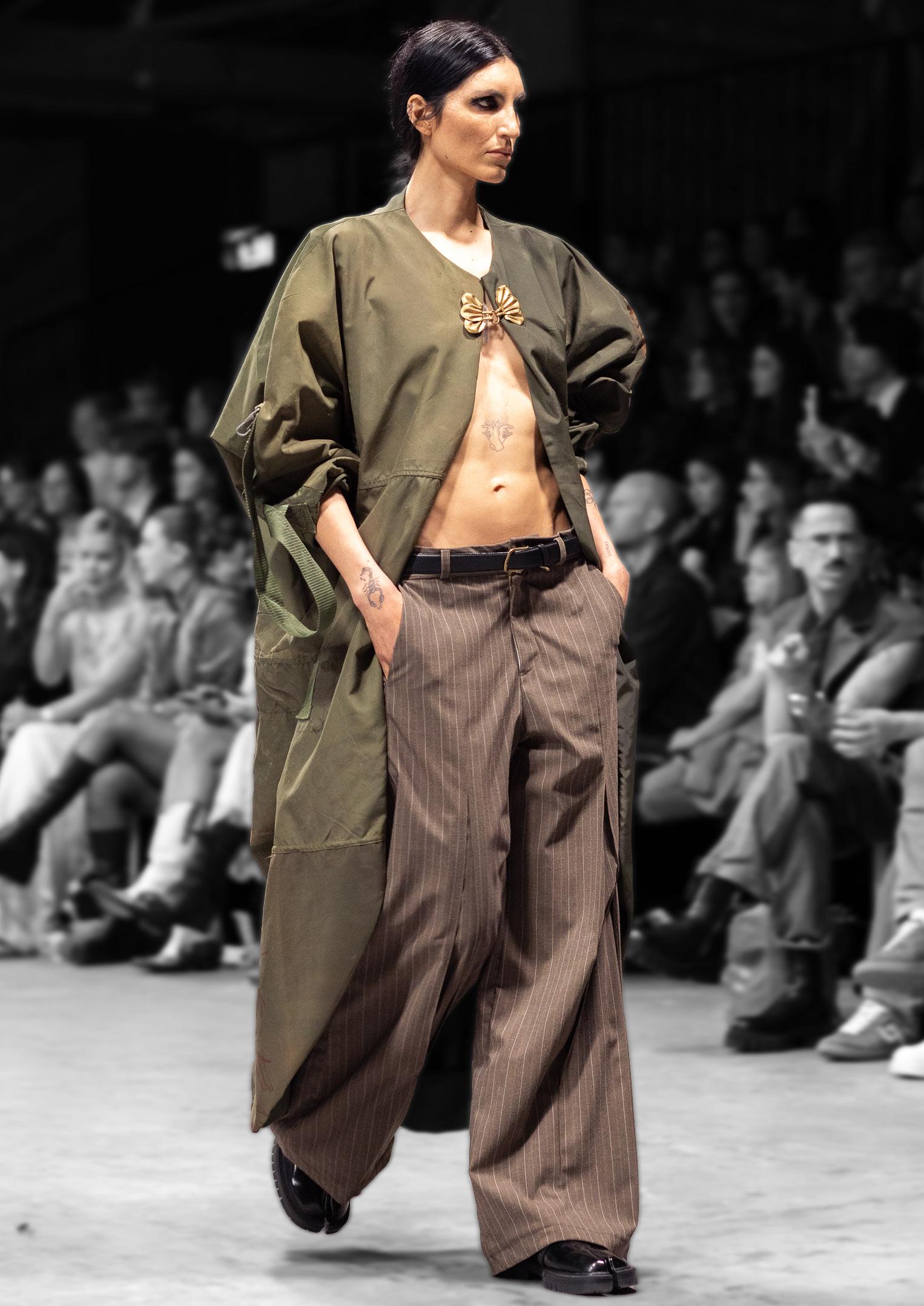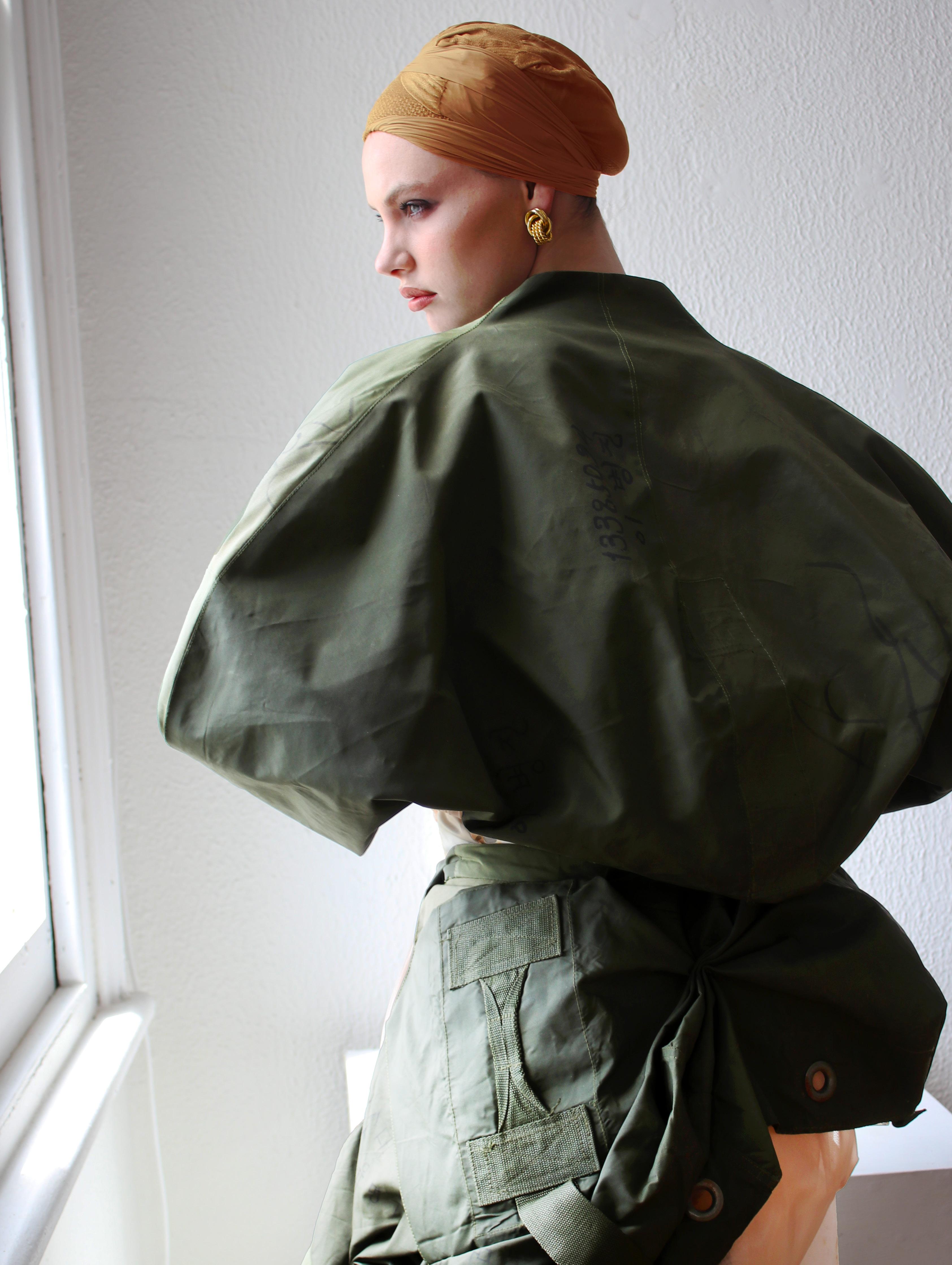 AboutTyler Mckellar-Spence believes creativity and sustainable awareness can intertwine to redefine contemporary fashion. Her design philosophy centres on the transformation of upcycling, where discarded garments and forgotten textiles can be reborn, giving new life. Drawn to found objects since childhood, Mckellar-Spence explores how deconstruction can uncover new forms of beauty and meaning. Her practice reworks vintage pieces, thrifted finds, and textile waste into modern silhouettes that merge storytelling with sustainability. Through experimental dyeing, military surplus duffle bags, and limited end-of-roll fabrics, she exposes the hidden potential within the discarded. Mckellar-Spence’s work embodies a poetic balance between preservation and reinvention.