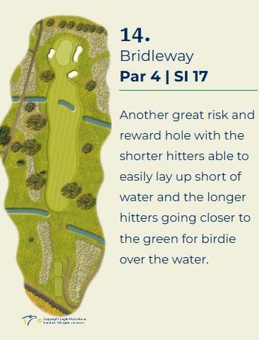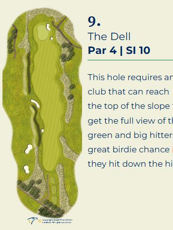 A bit of a signature hole and also a good hole for your groups nearest thee pin. With a river coming across the course a good carry will be well rewarded.