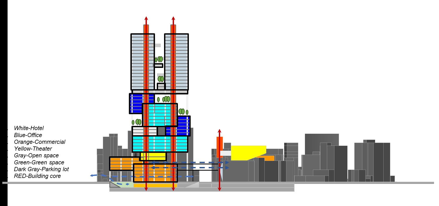 3. Sky bridge 4. Lecture Hall 5. Public space