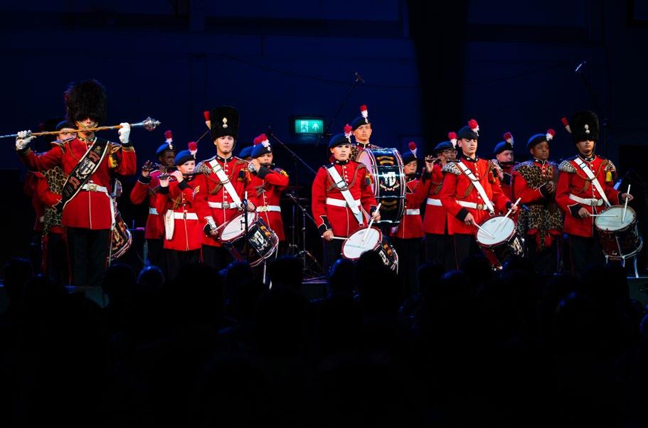 Guests arrived to a splendid drinks reception in the Concert Hall and had the opportunity to meet fellow drummers, their friends and families. There was a chance to look at the Corps’ heritage collection including photos from the past and historic items such as the old Drum Major’s mace and the classic ropetension drums.