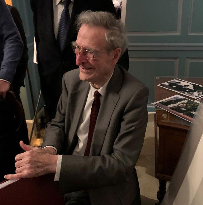 Pride of place this year goes to Professor Jacques Heyman (OW193441), Emeritus Fellow of Peterhouse, Cambridge, doyen of structural engineers and former head of the University of Cambridge’s Department of Engineering, who celebrated his 100th birthday. He went up to Peterhouse in 1941 at the age of 16 and has therefore been associated with the College for over 80 years. The photograph shows him at a birthday celebration in Peterhouse.