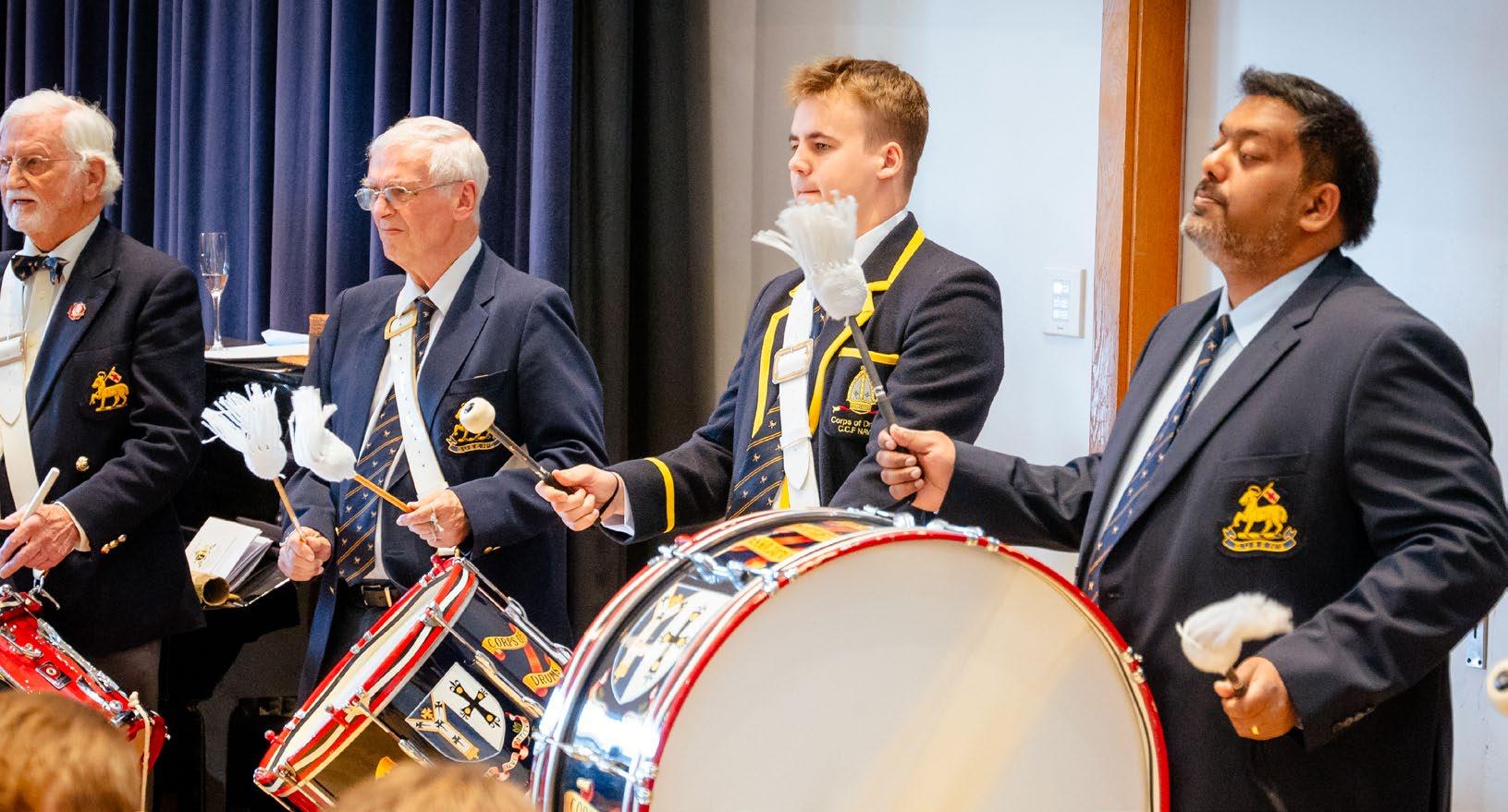 The 120th Anniversary celebration of the Corps of Drums held on Saturday 7 June 2025 was a wonderful occasion. We had 76 guests ranging in age from 18 to 93 with former members of the Corps from the 1940s to the present day. In addition, the current members of the School’s Corps joined the concert to make it a truly memorable event.
