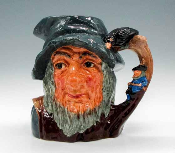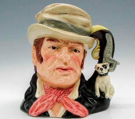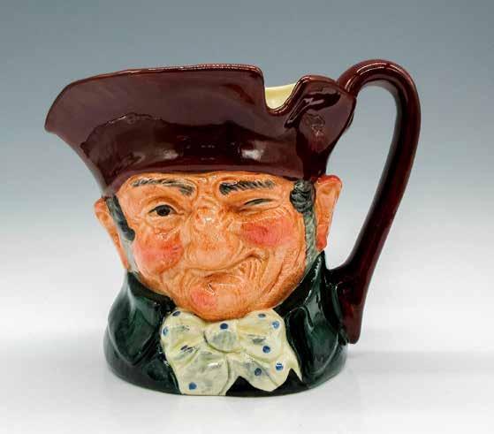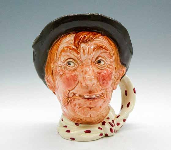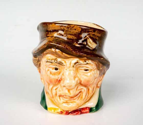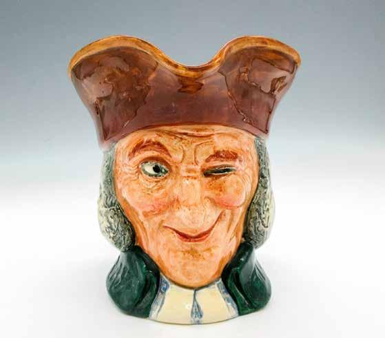 Beige hat, green jacket, red scarf. One of Dickens’ most memorable characters is the infamous Bill Sikes, a character from “ Oliver Twist.” This jug was commissioned by Lawleys By Post in a limited edition of 2,500. Series: Charles Dickens’ Characters. Royal Doulton backstamp.