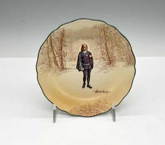 Round small dish designed with Hamlet in center. Royal Doulton backstamp.