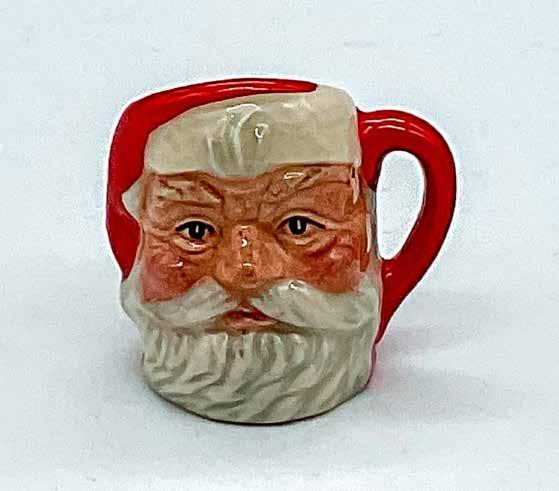 Small pitcher features Santa with his sleigh, reindeer and gifts. Verse printed on reverse Handsome Hostess, Merry Host, A Pot of Ale, And Now a Toast. Royal Doulton backstamp. 19.
