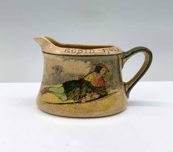 Beige colored and adorned with a scene of Robin Hood lying down to carefully focus on his target. Royal Doulton backstamp.